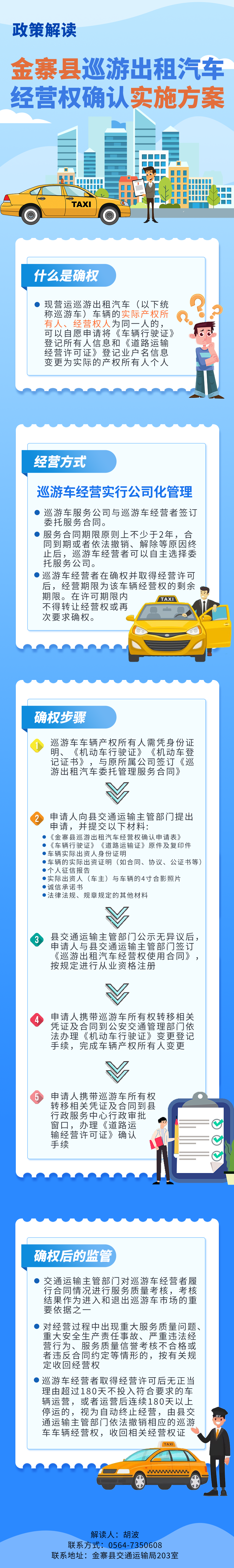 縣交通運輸局負責巡游車確權工作的宣傳引導、政策解讀、資料審查、辦理經營權變更等工作。