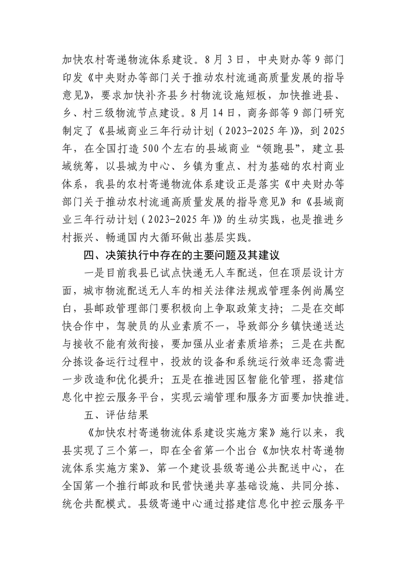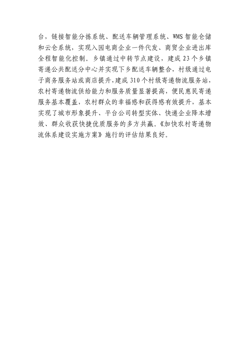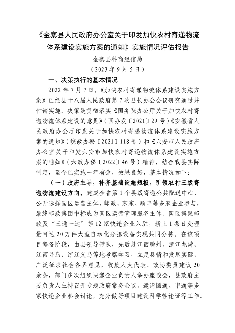 【規范性文件發布后評估】《金寨縣人民政府辦公室關于印發加快農村寄遞物流體系建設實施方案的通知》實施情況評估報告