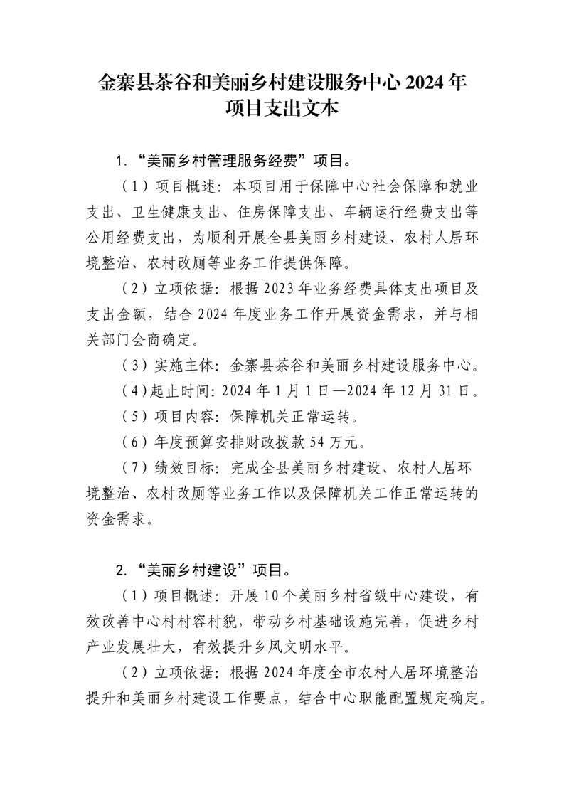 金寨縣茶谷和美麗鄉村建設服務中心2024年項目支出文本