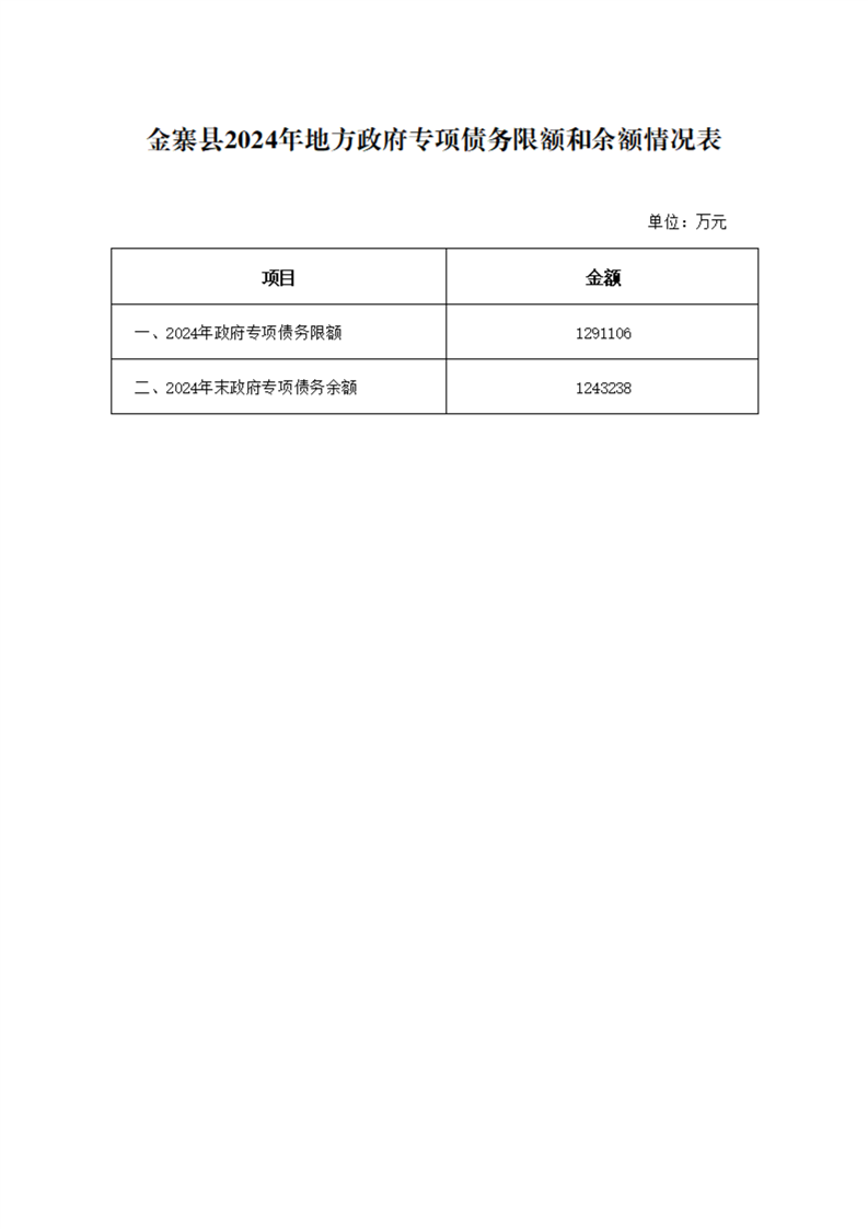 金寨縣2024年地方政府專項(xiàng)債務(wù)限額和余額情況表