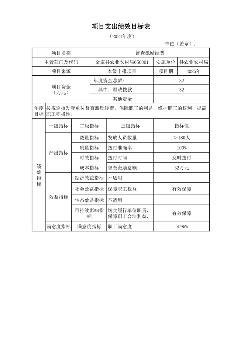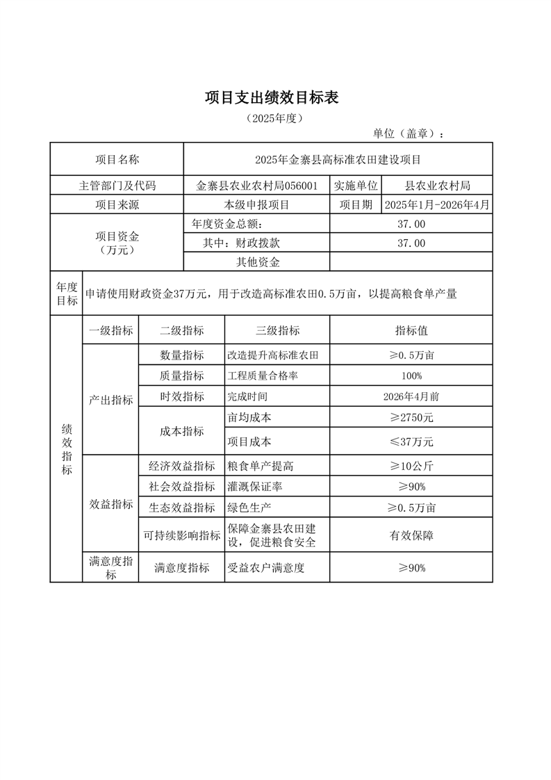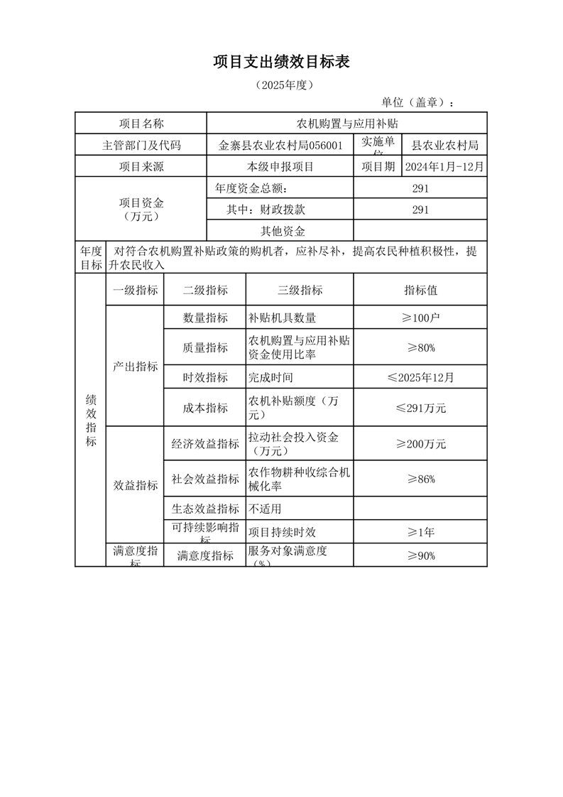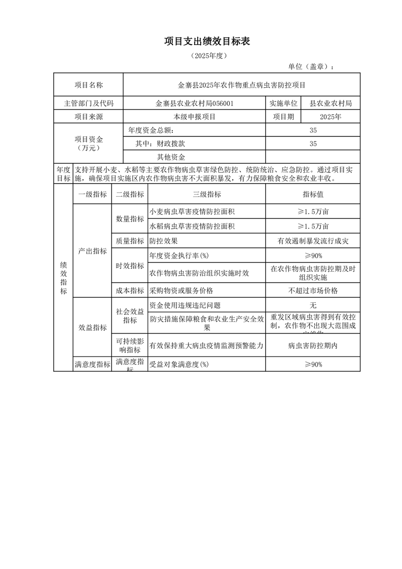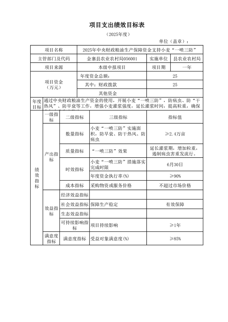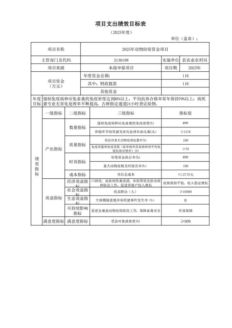 金寨縣農業農村局2025年第一季度追加項目績效目標表