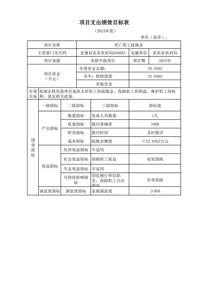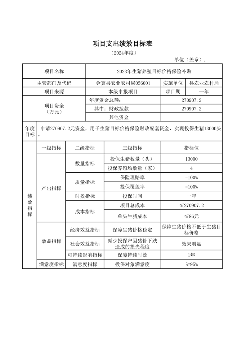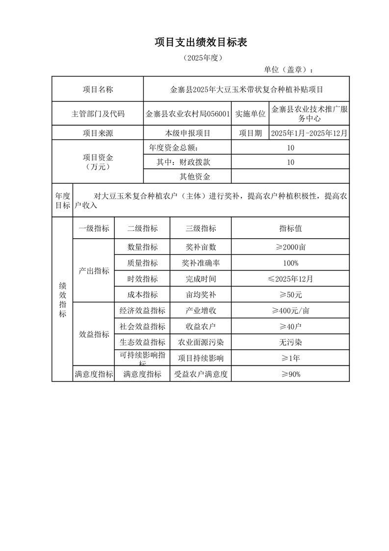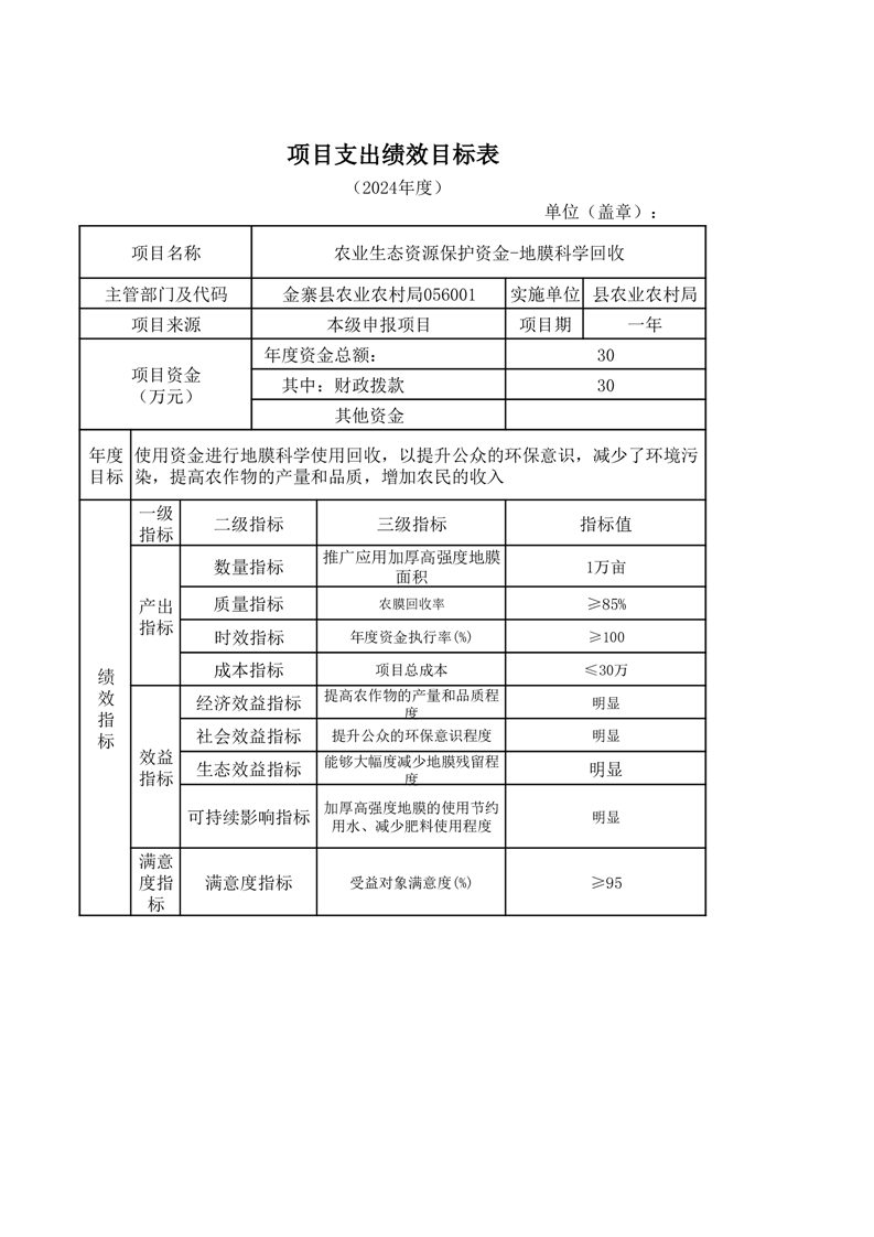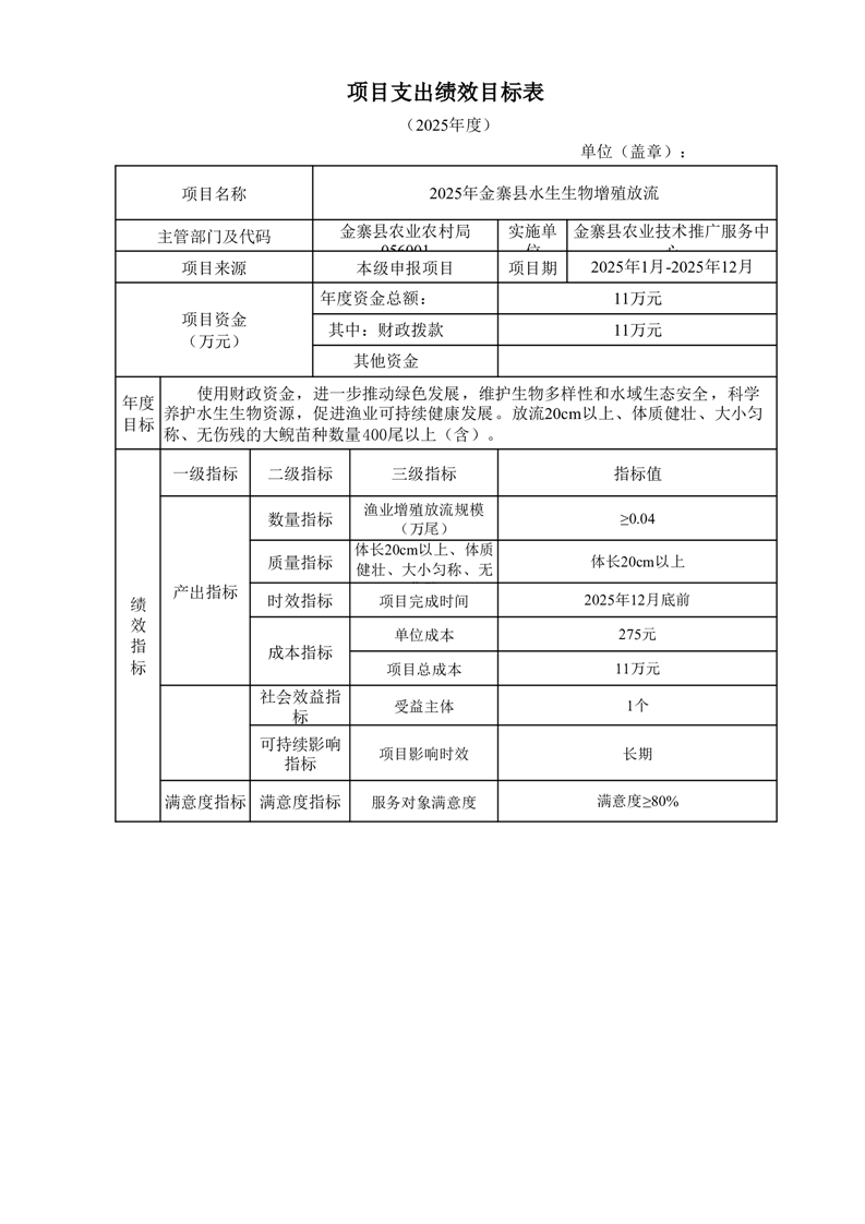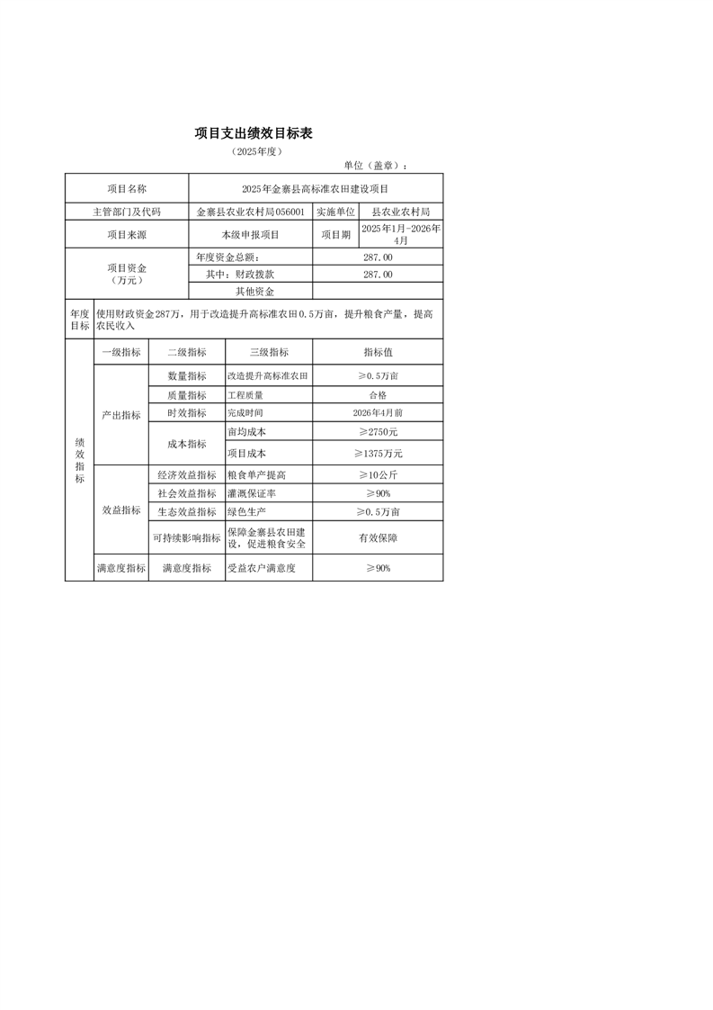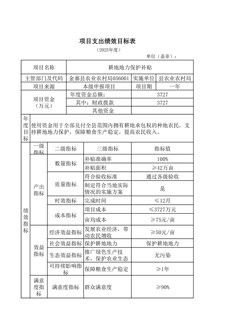 金寨縣農業農村局2025年第一季度追加項目績效目標表