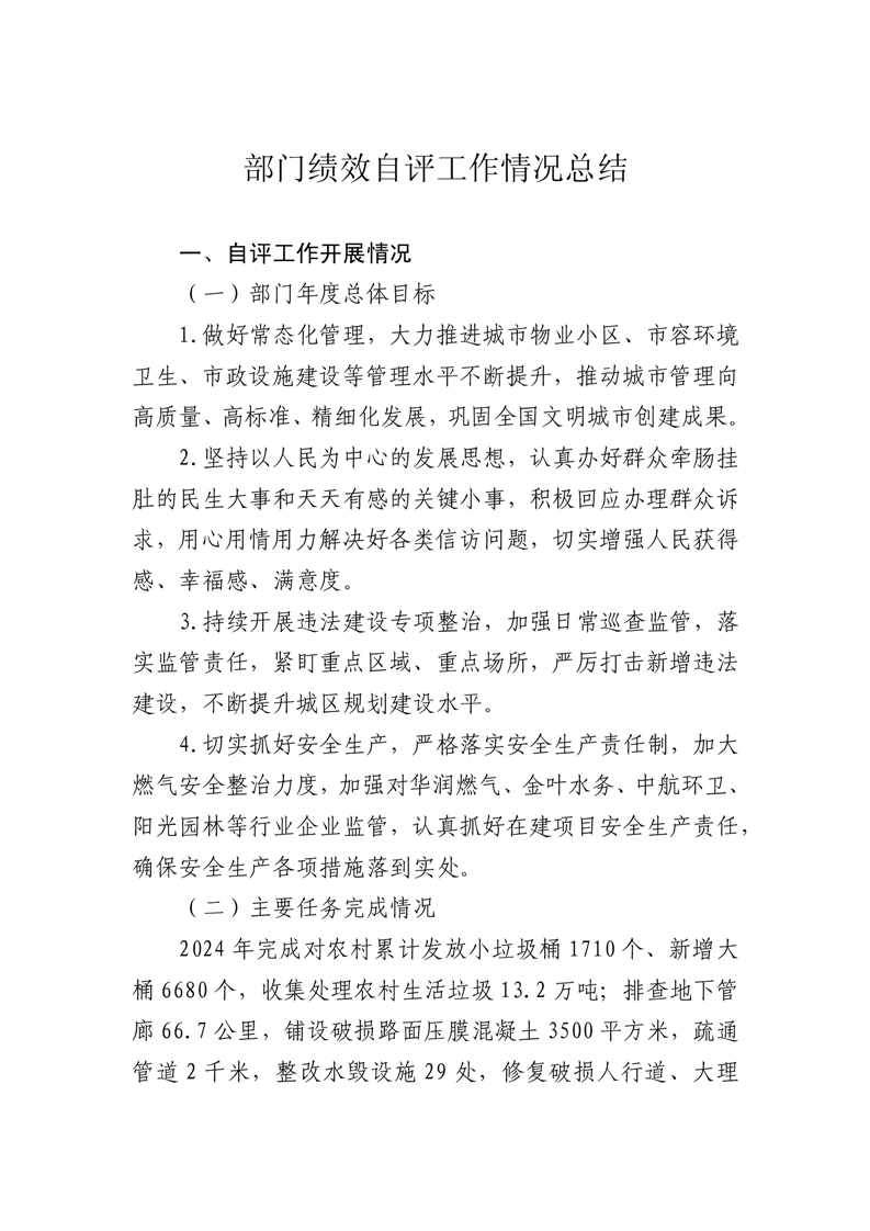 金寨縣城市管理局2024年度部門績效自評工作情況總結