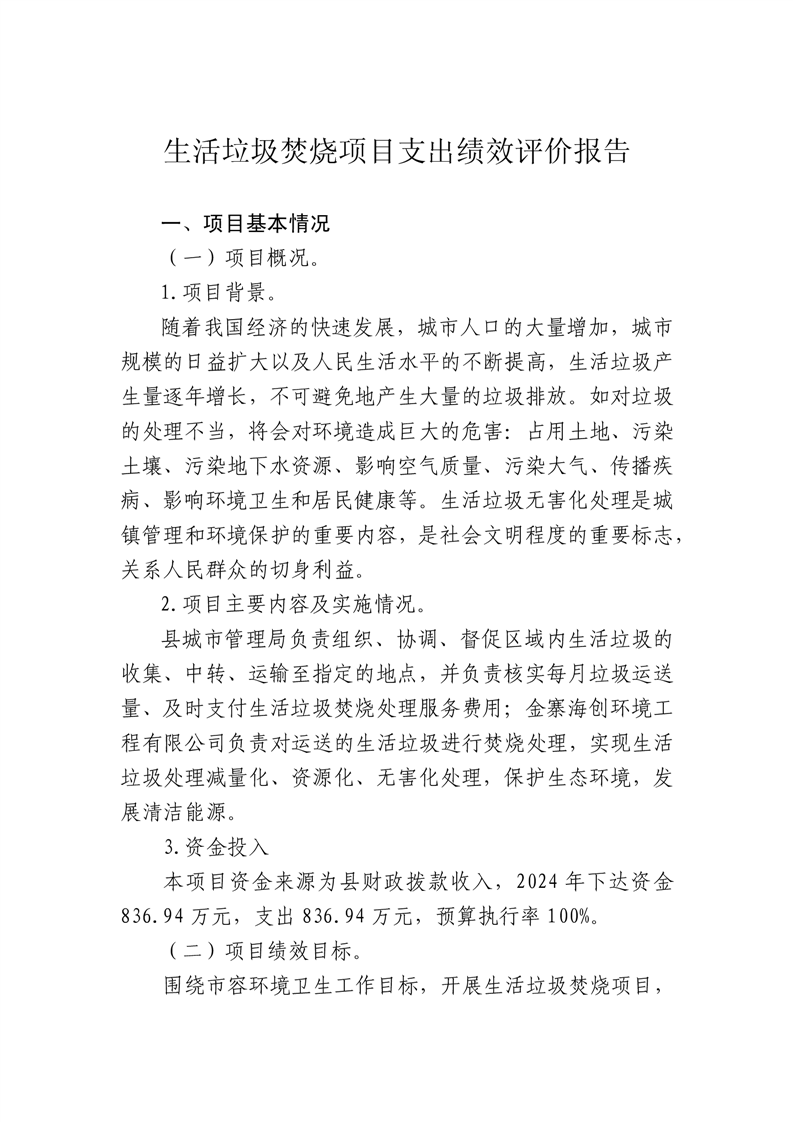 金寨縣城市管理局2024年度項目支出績效評價報告