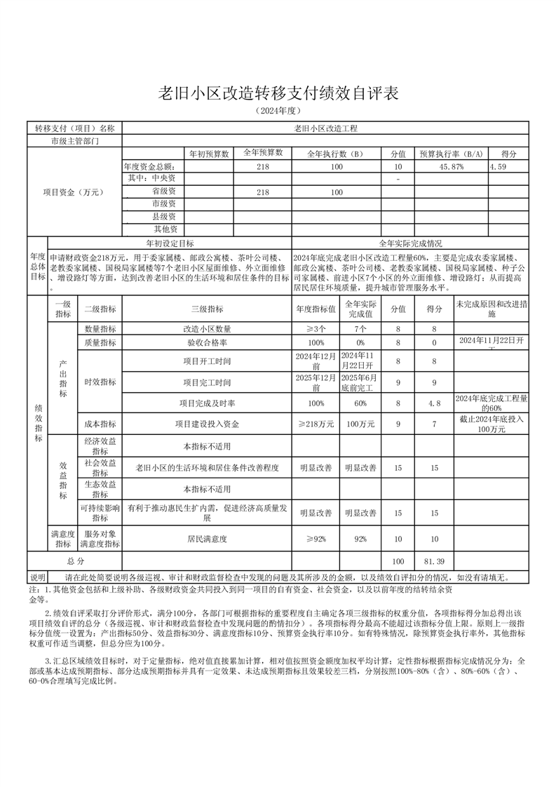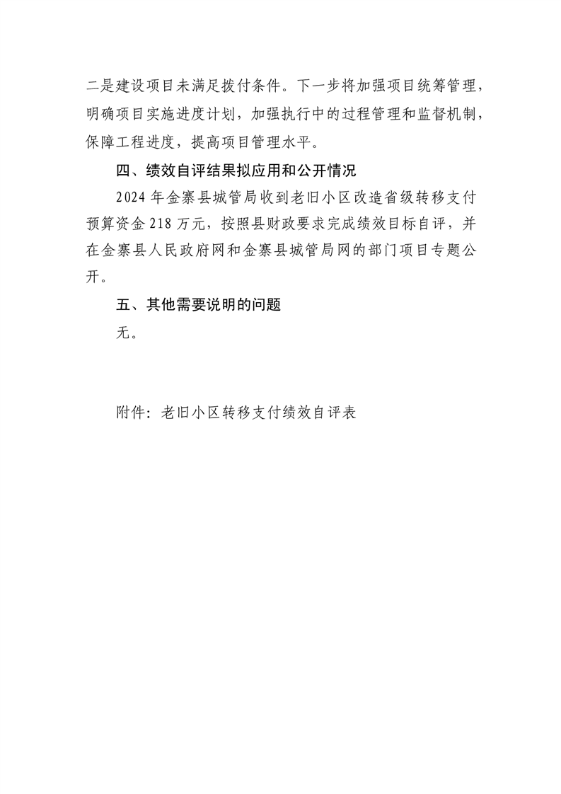 金寨縣城市管理局2024年度轉移支付績效自評報告和自評表