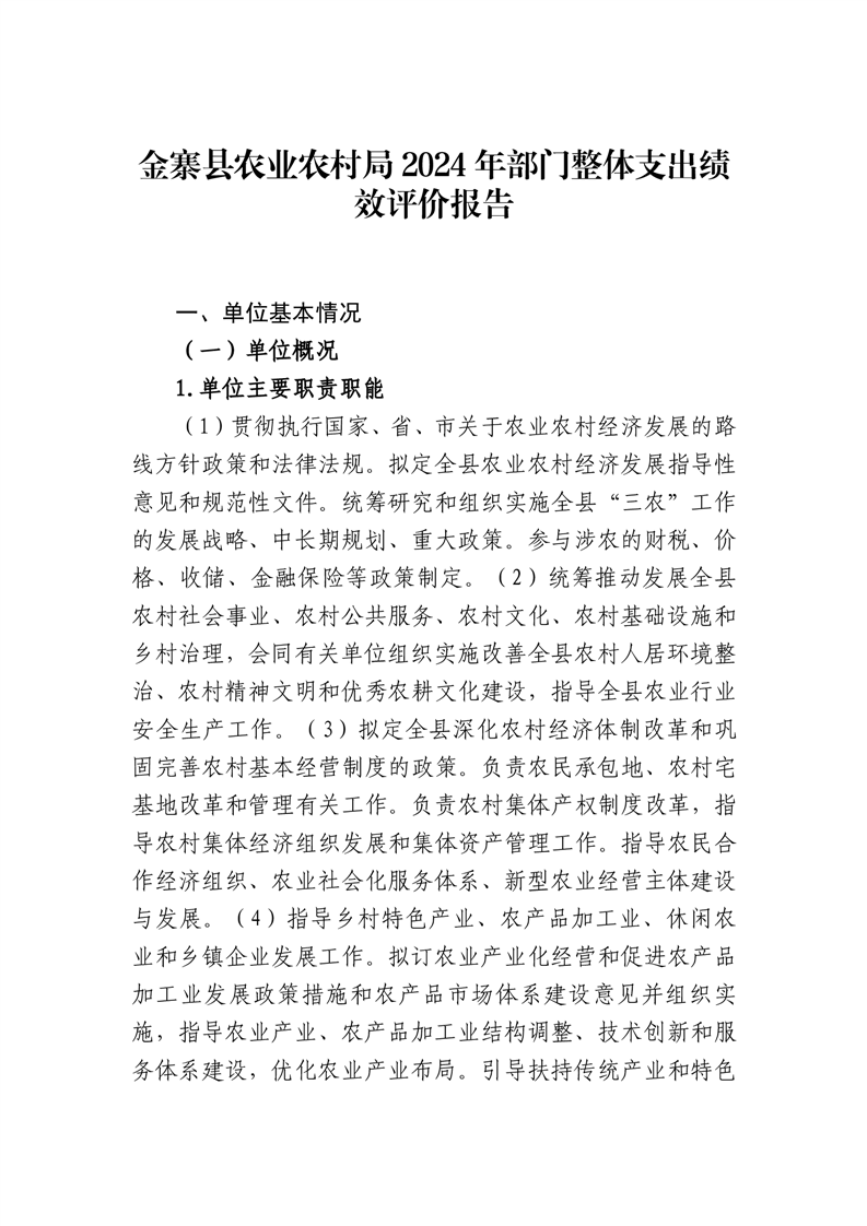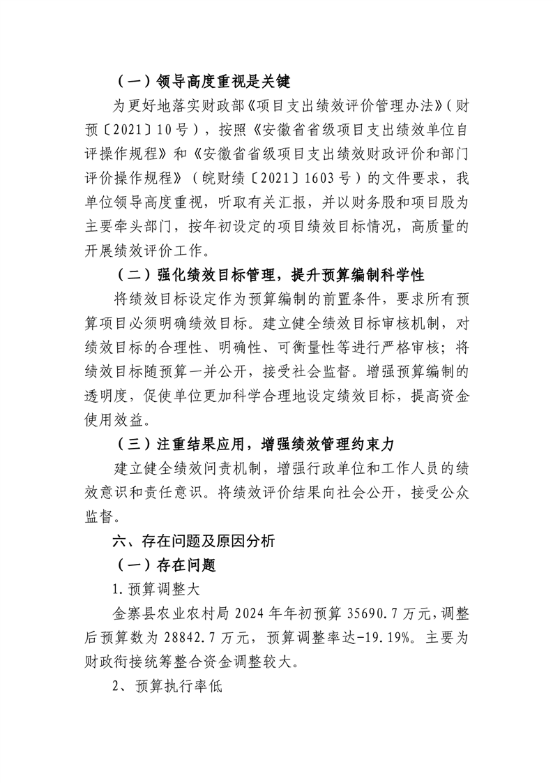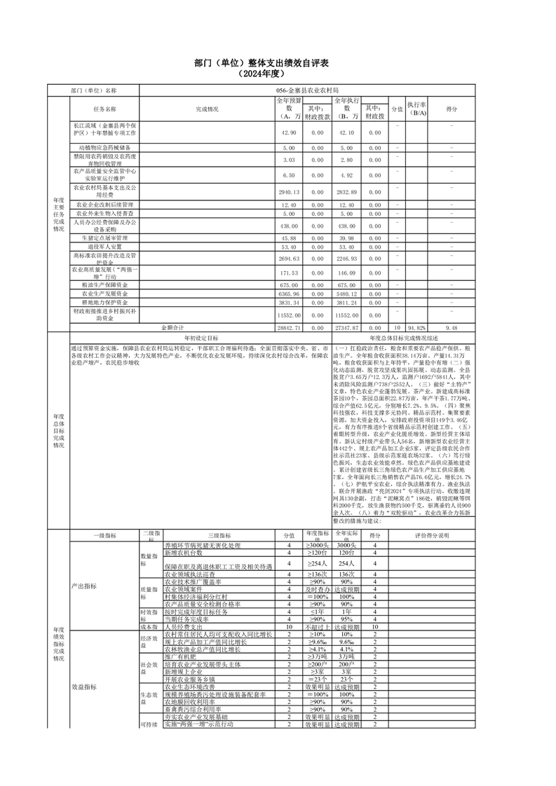 金寨縣農業農村局2024年部門整體支出績效自評表和自評報告