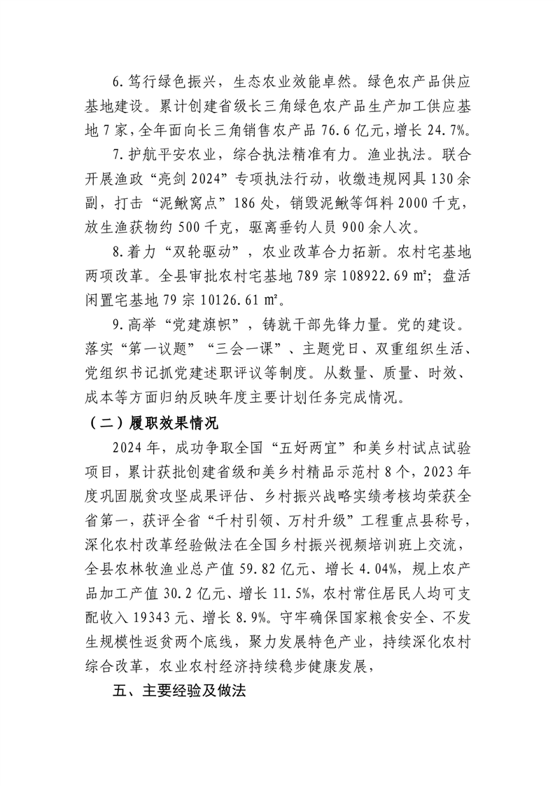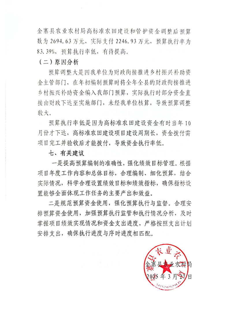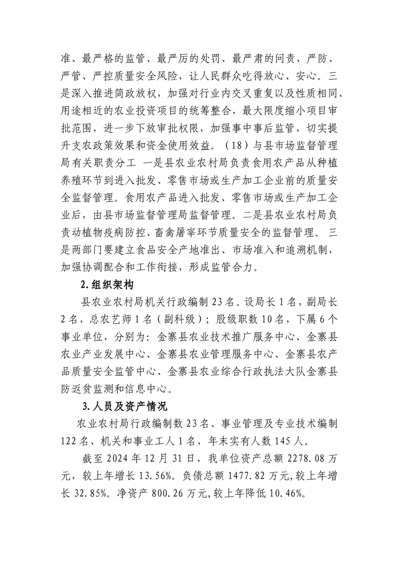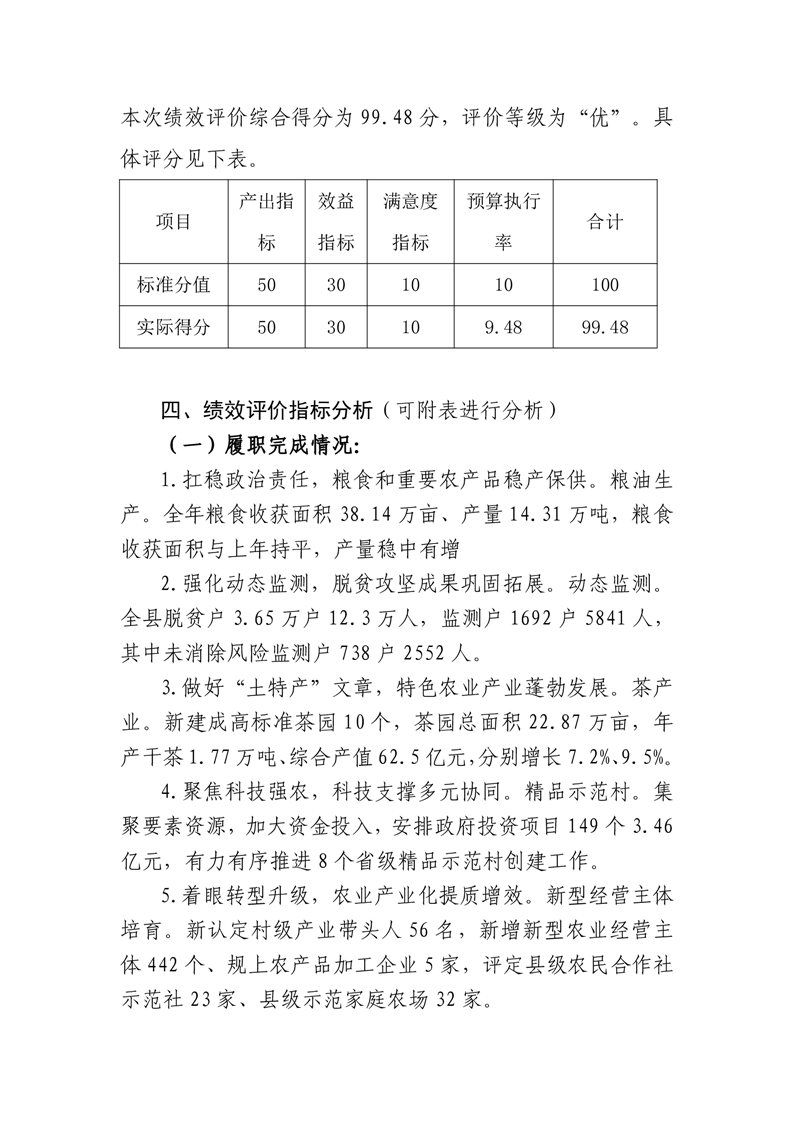 金寨縣農業農村局2024年部門整體支出績效自評表和自評報告
