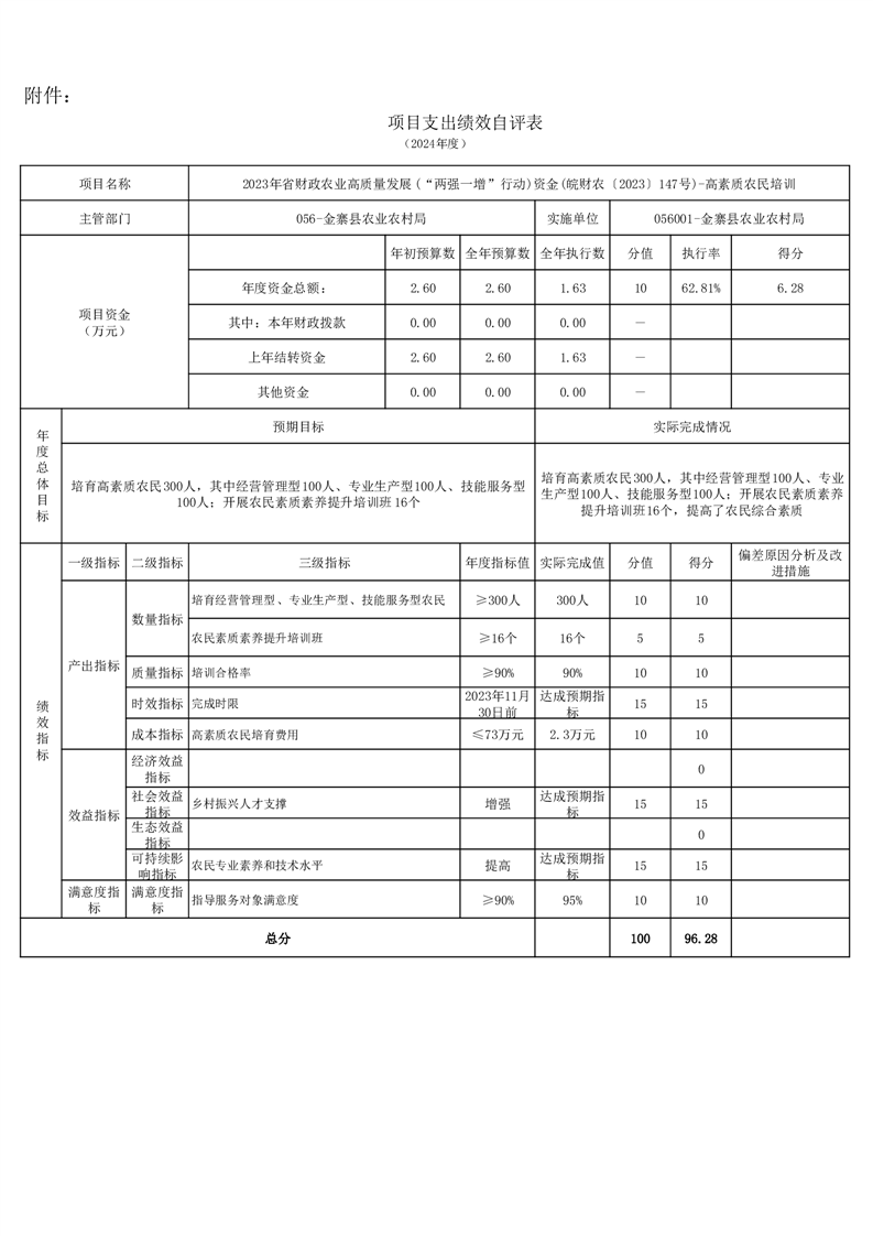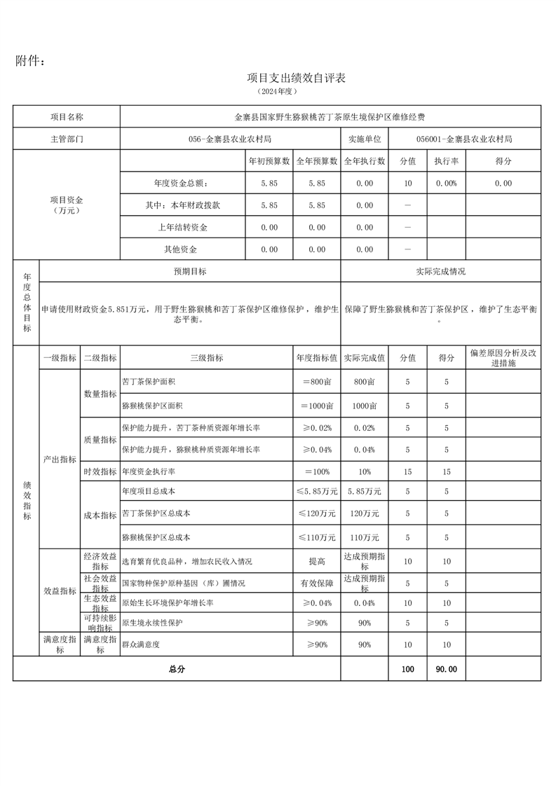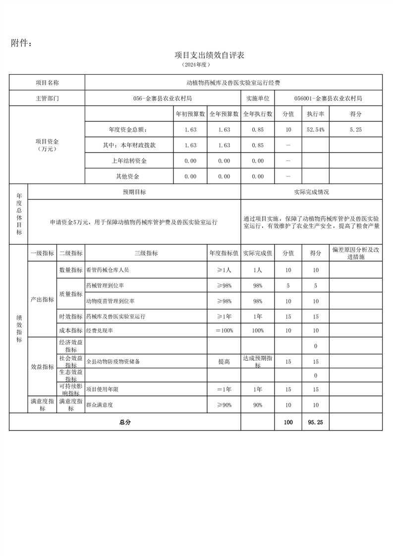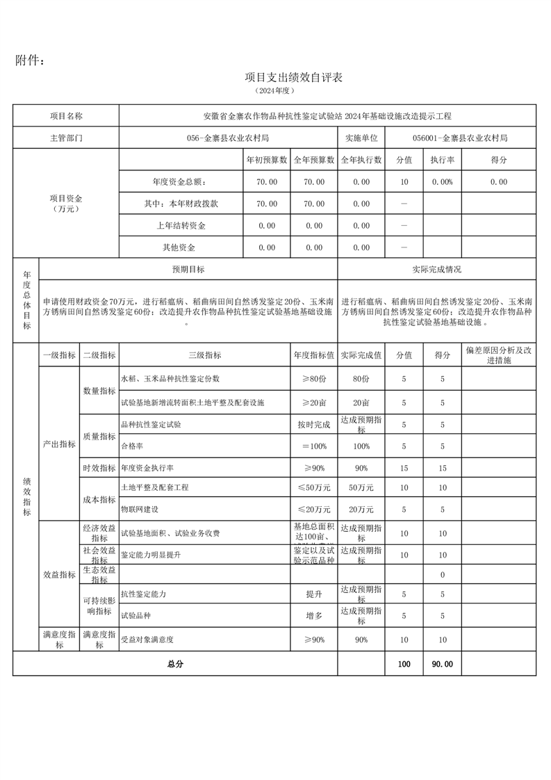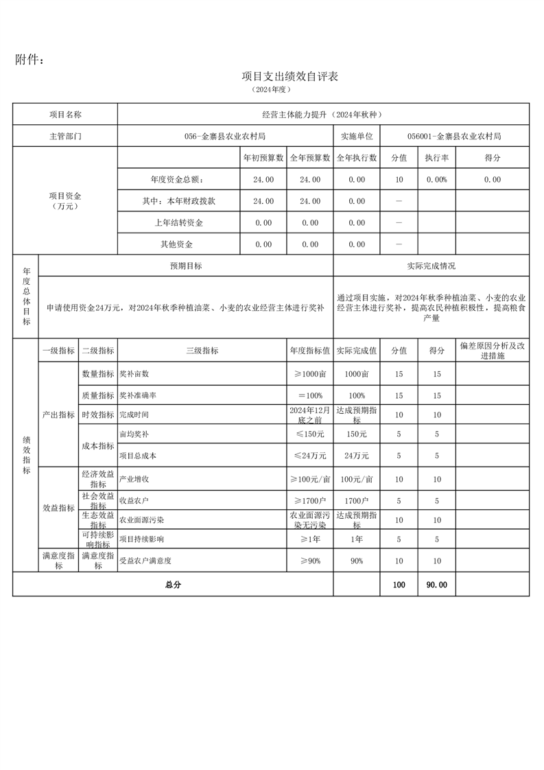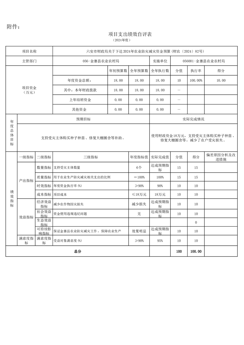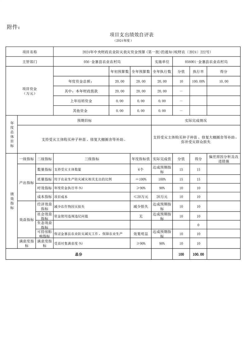 金寨縣農業農村局2024年項目支出績效自評表和自評報告