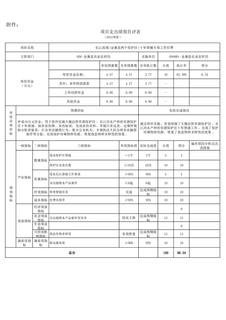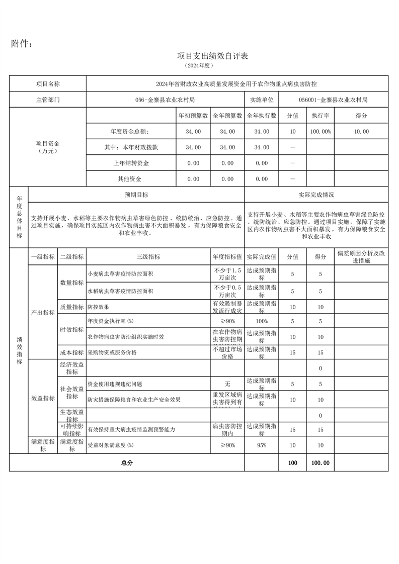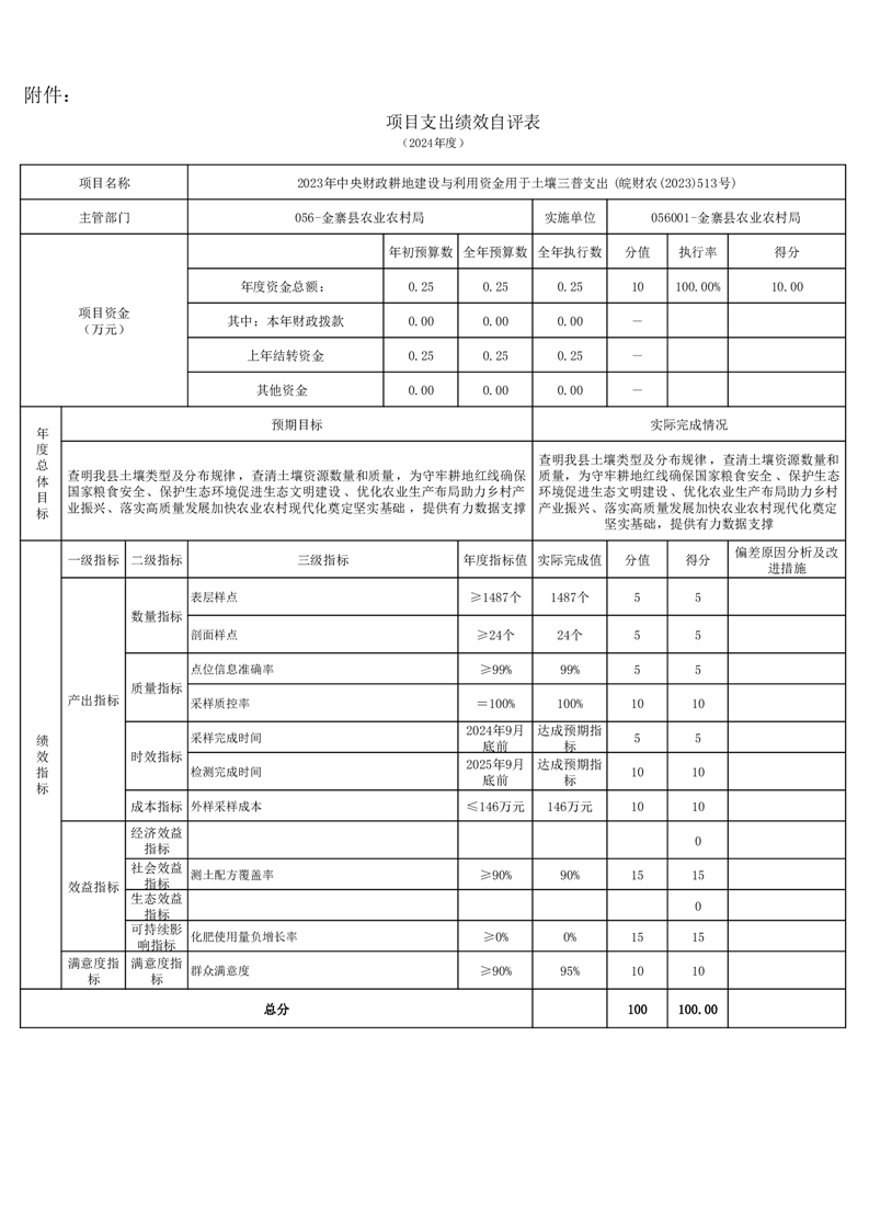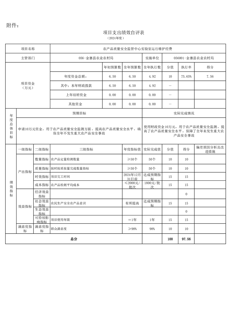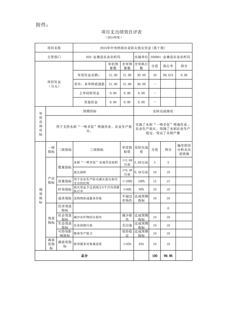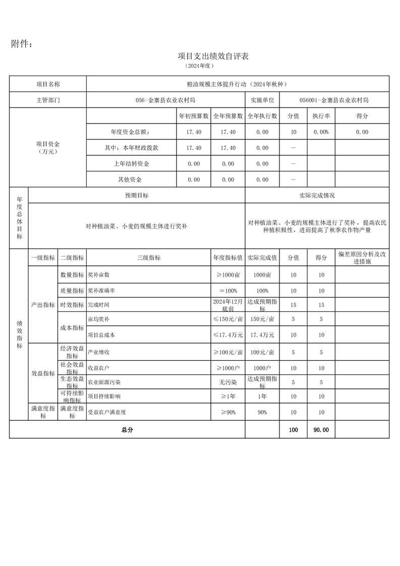 金寨縣農業農村局2024年項目支出績效自評表和自評報告