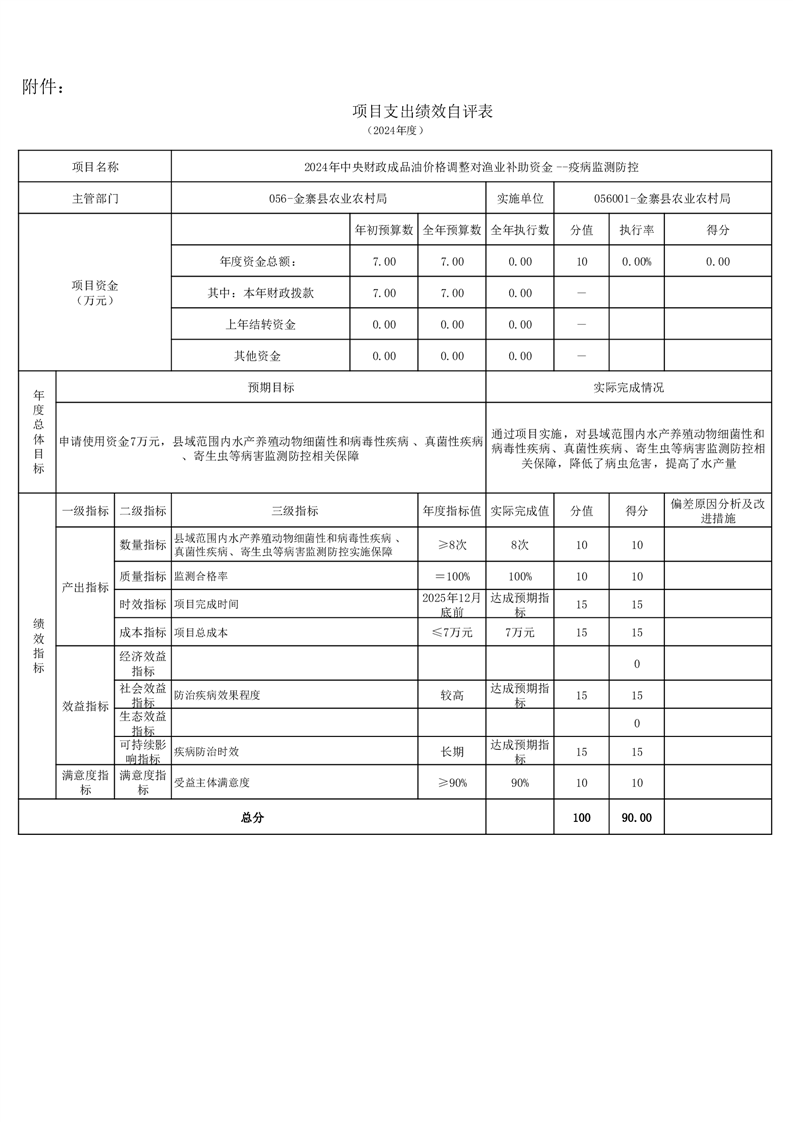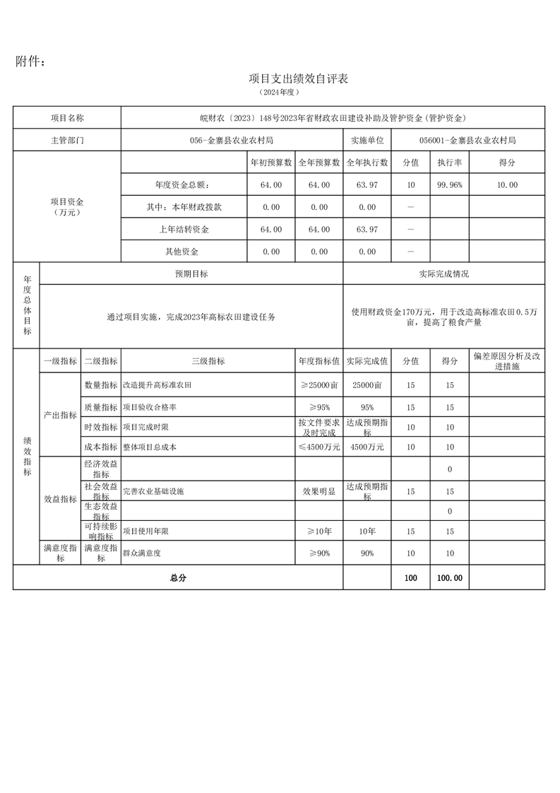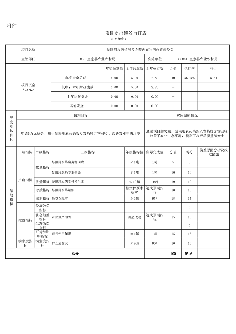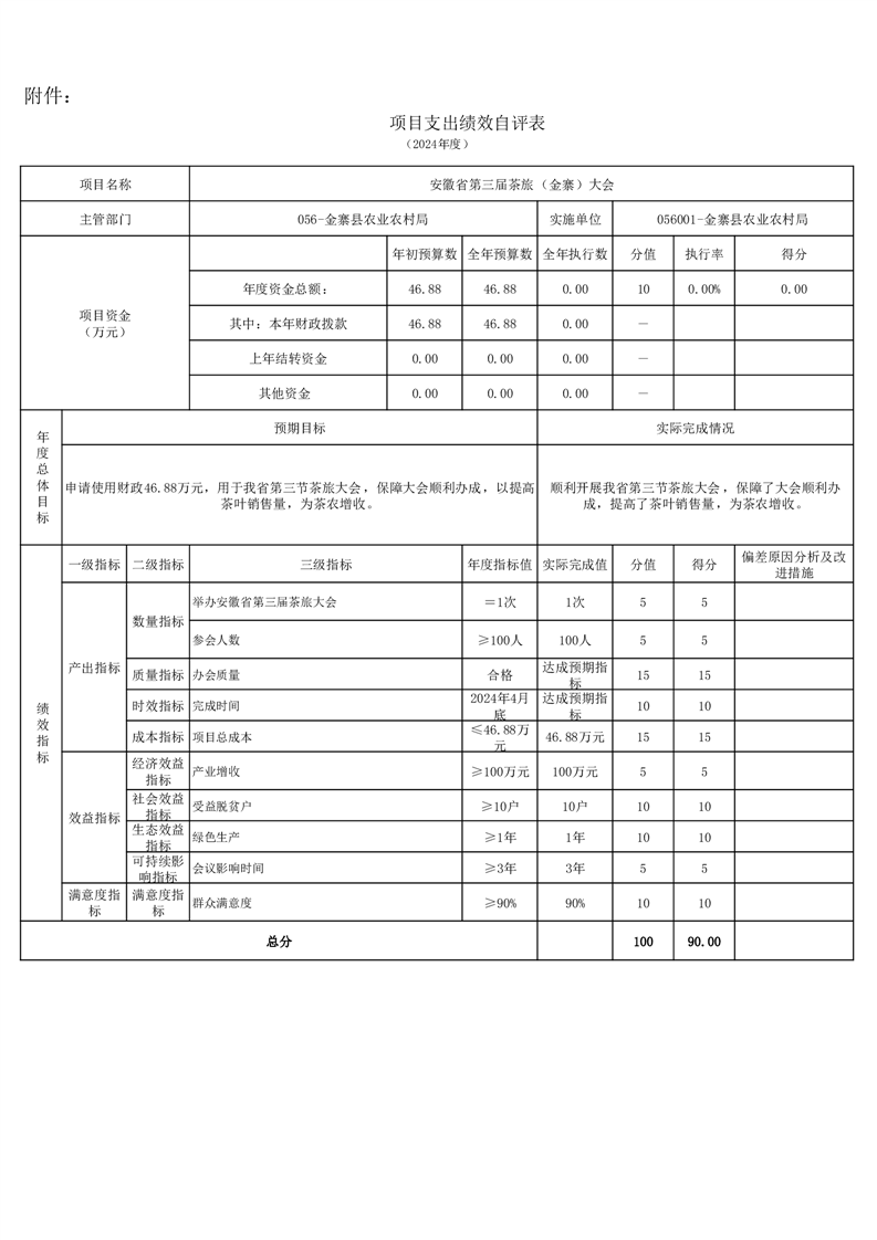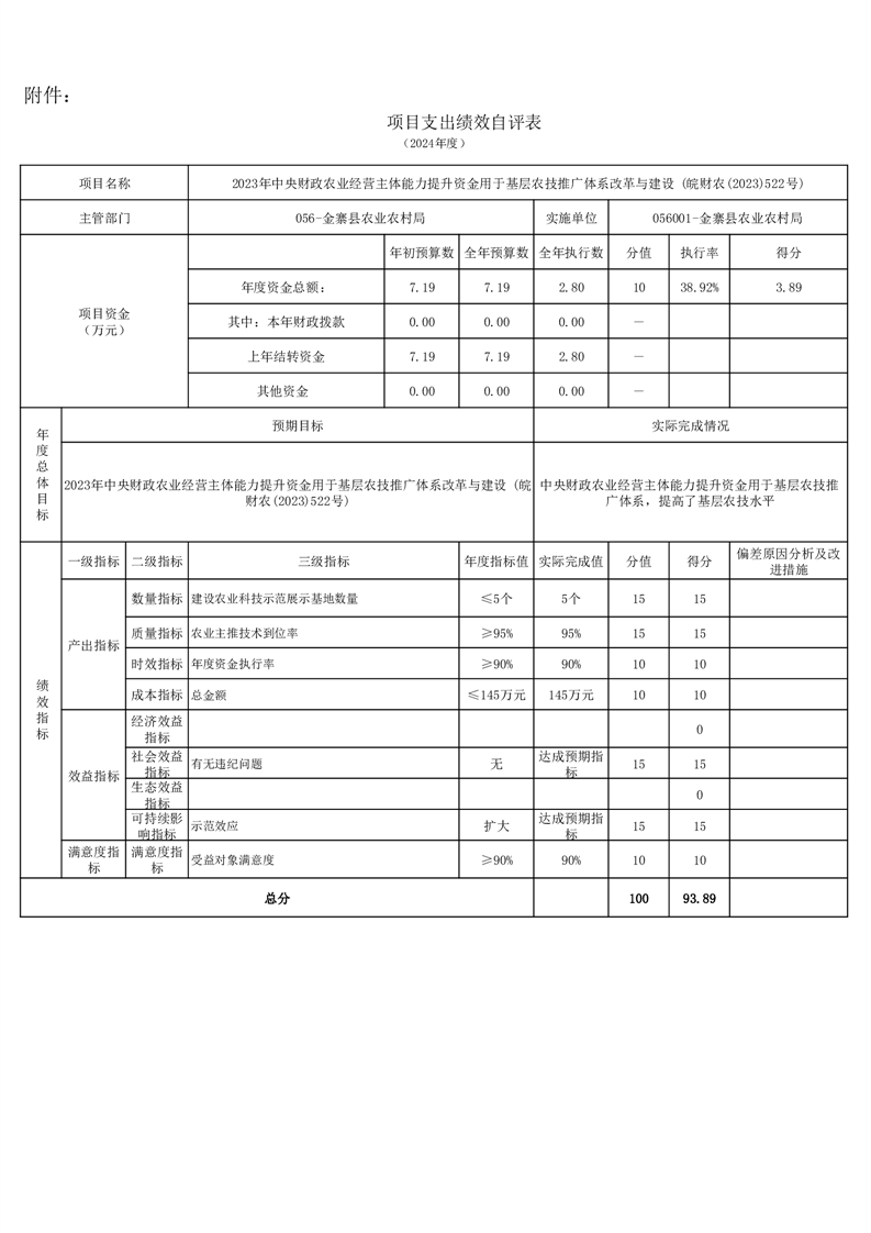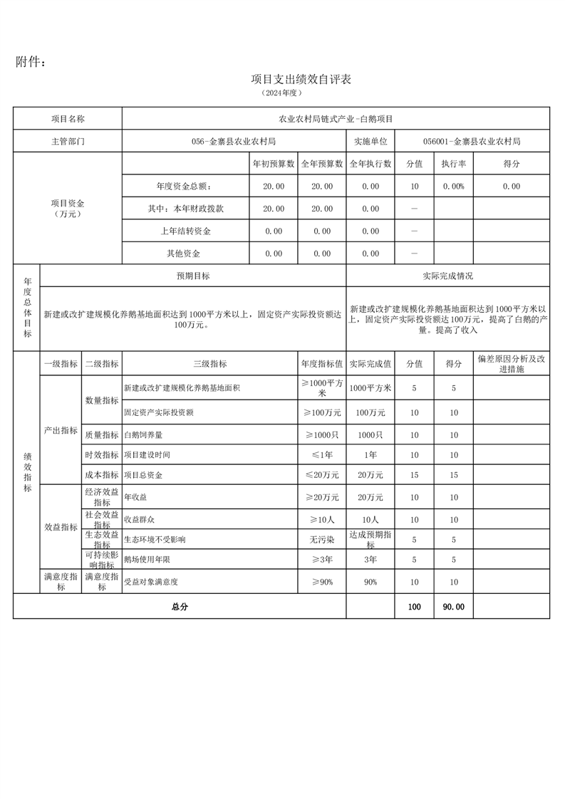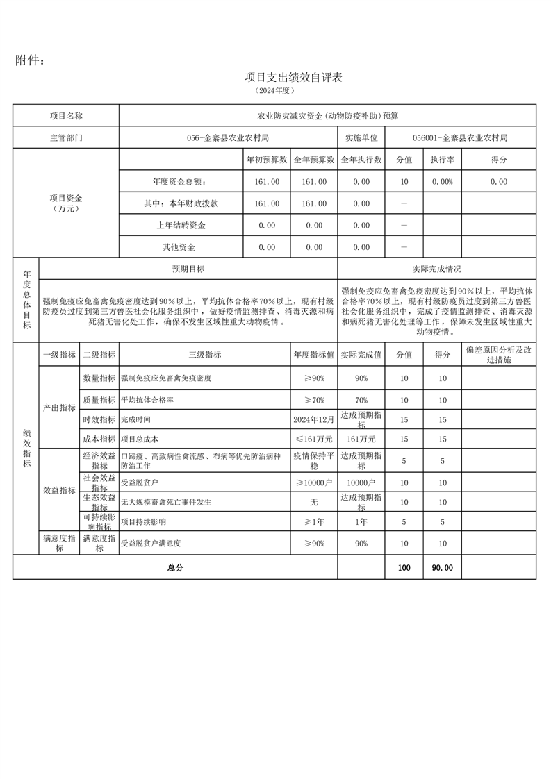 金寨縣農業農村局2024年項目支出績效自評表和自評報告