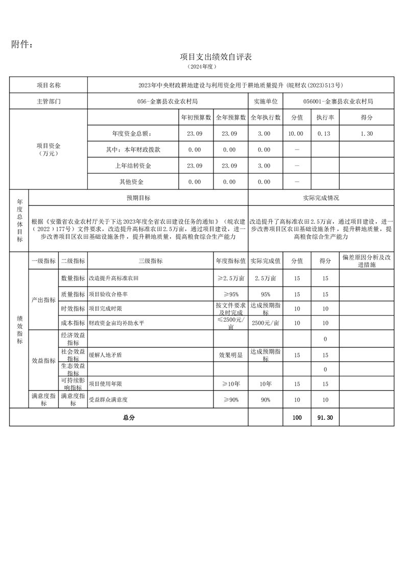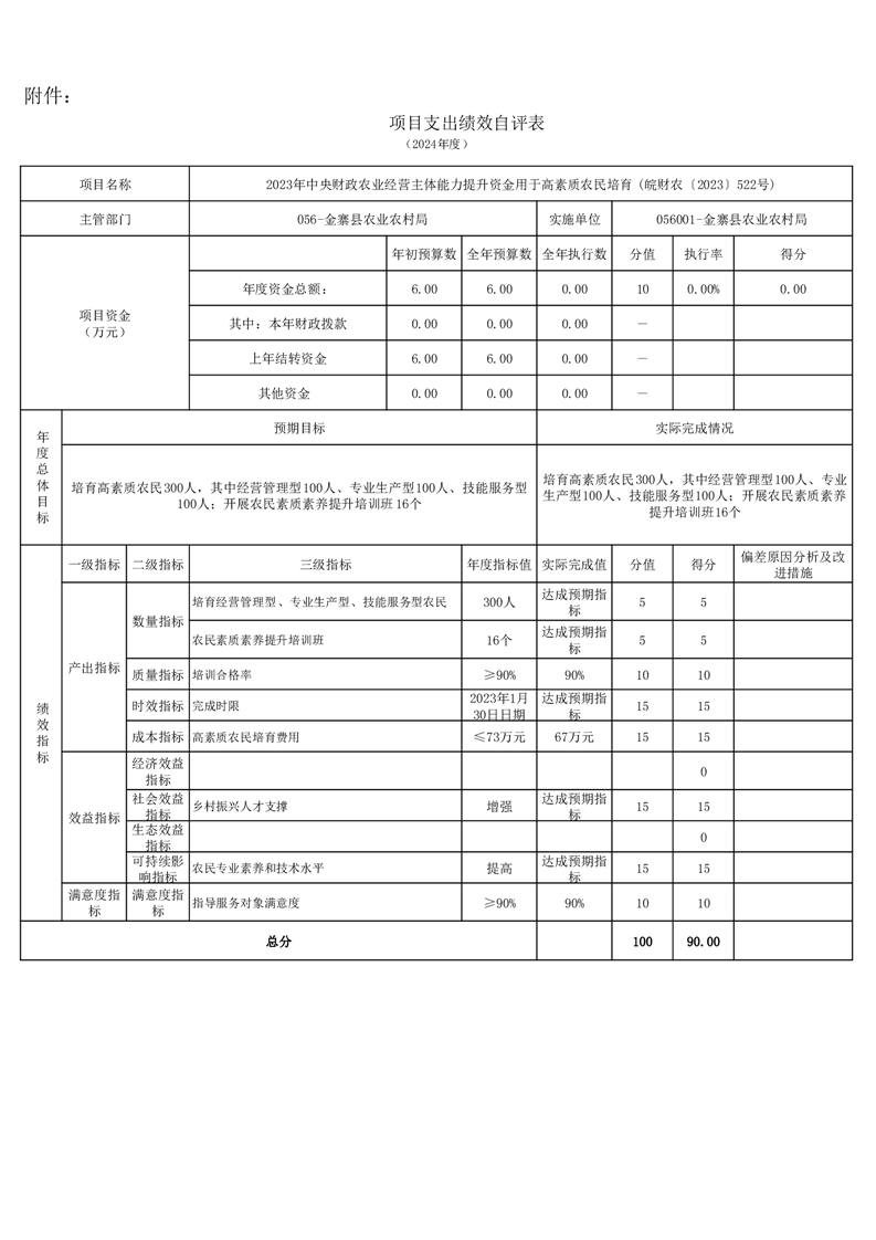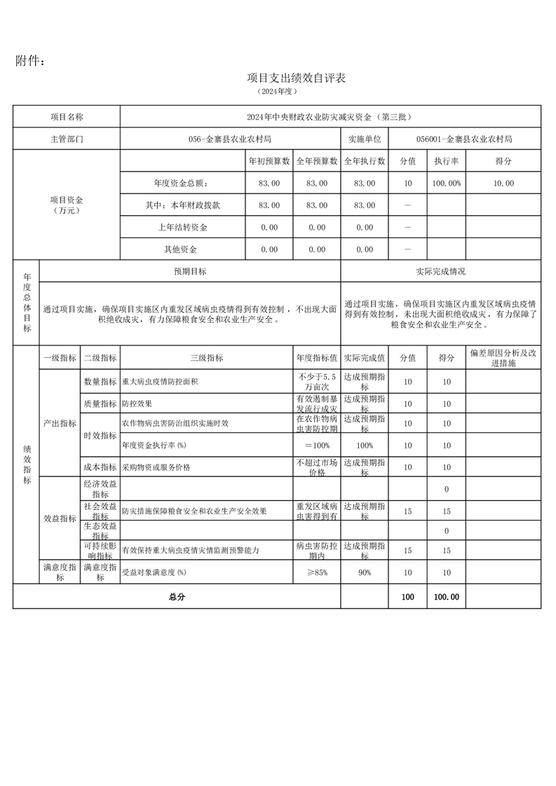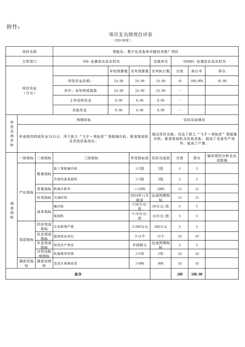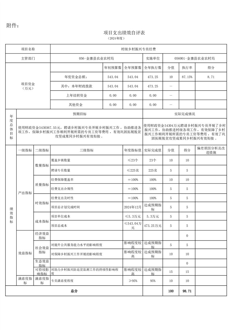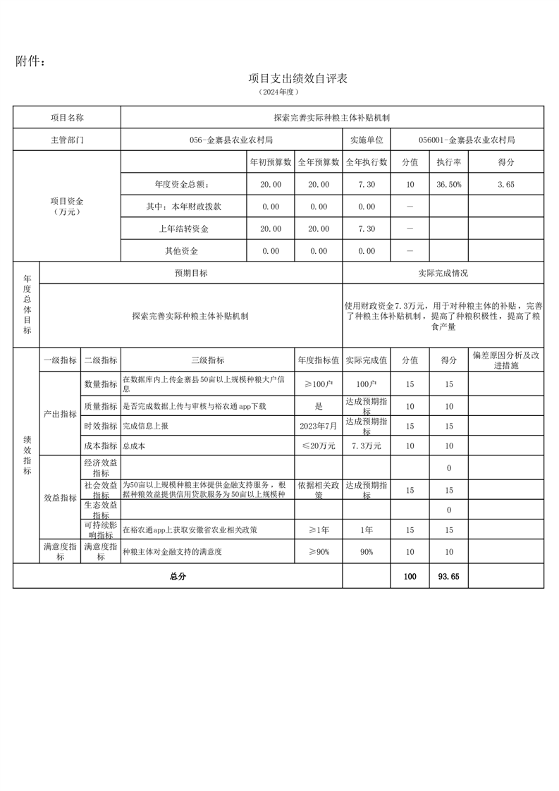 金寨縣農業農村局2024年項目支出績效自評表和自評報告