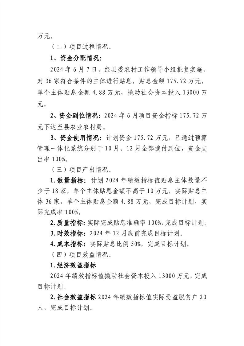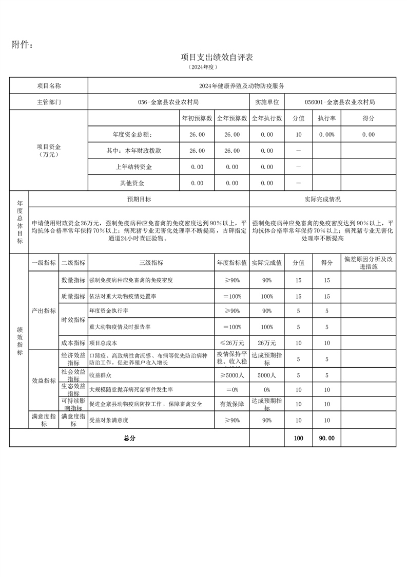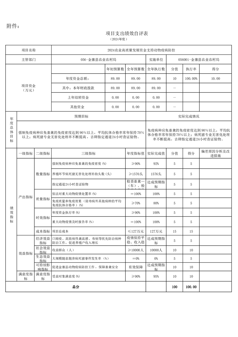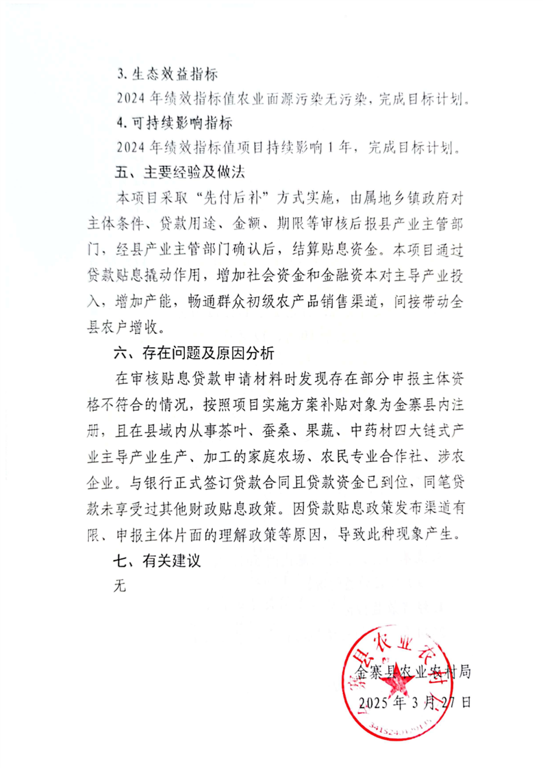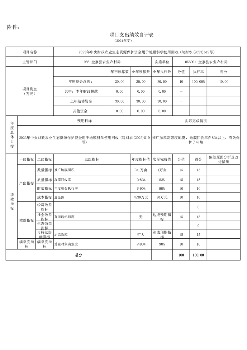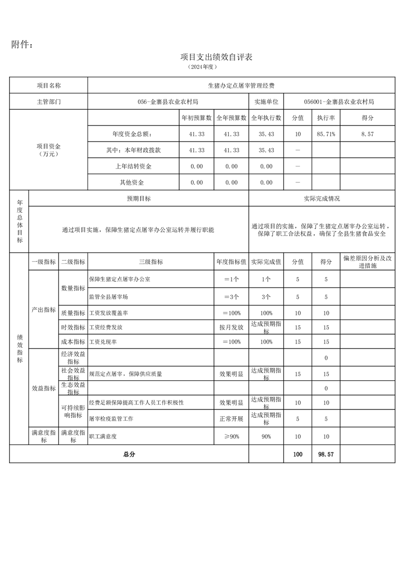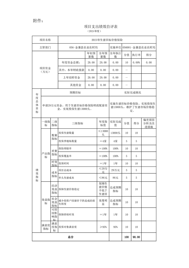 金寨縣農業農村局2024年項目支出績效自評表和自評報告