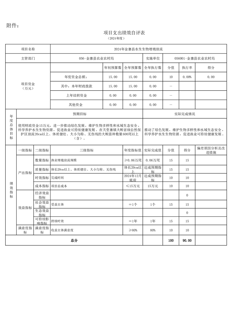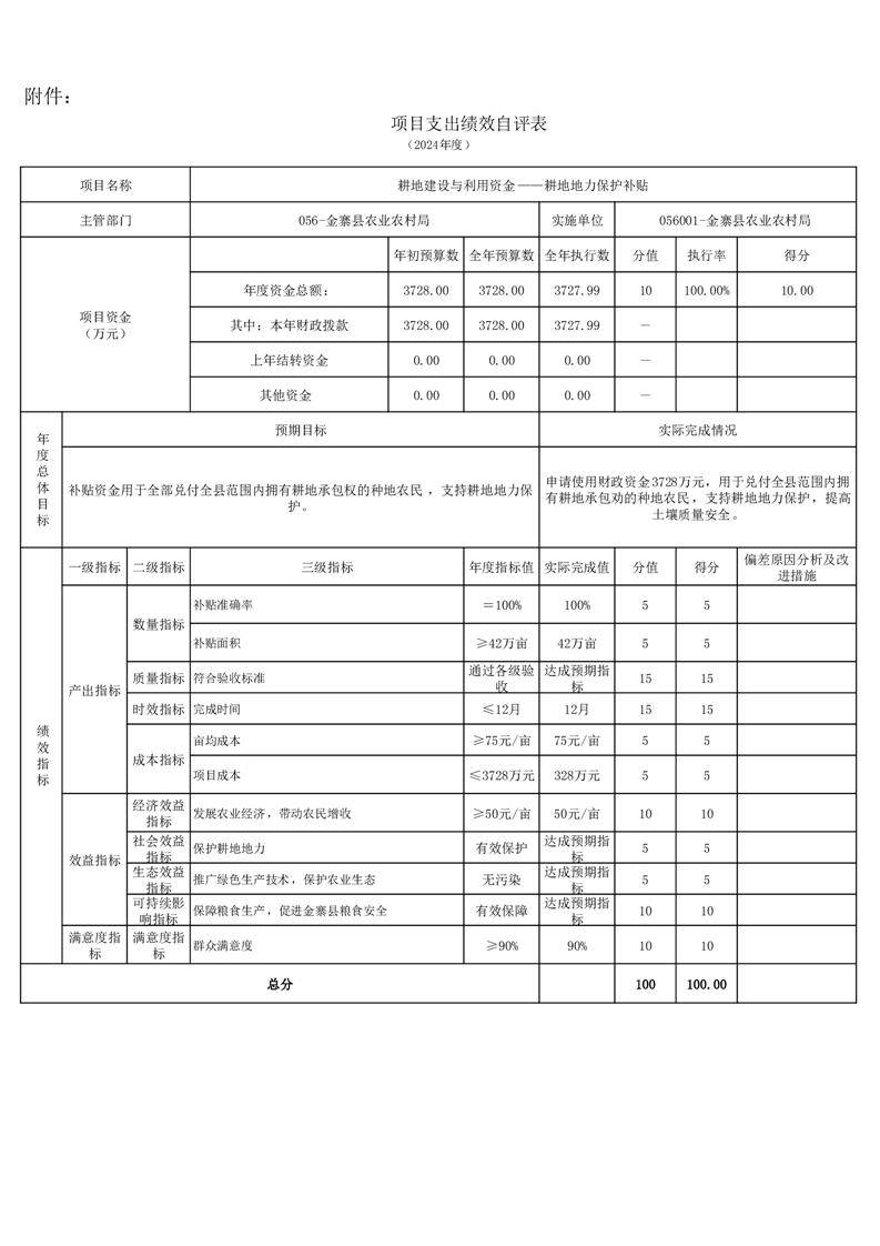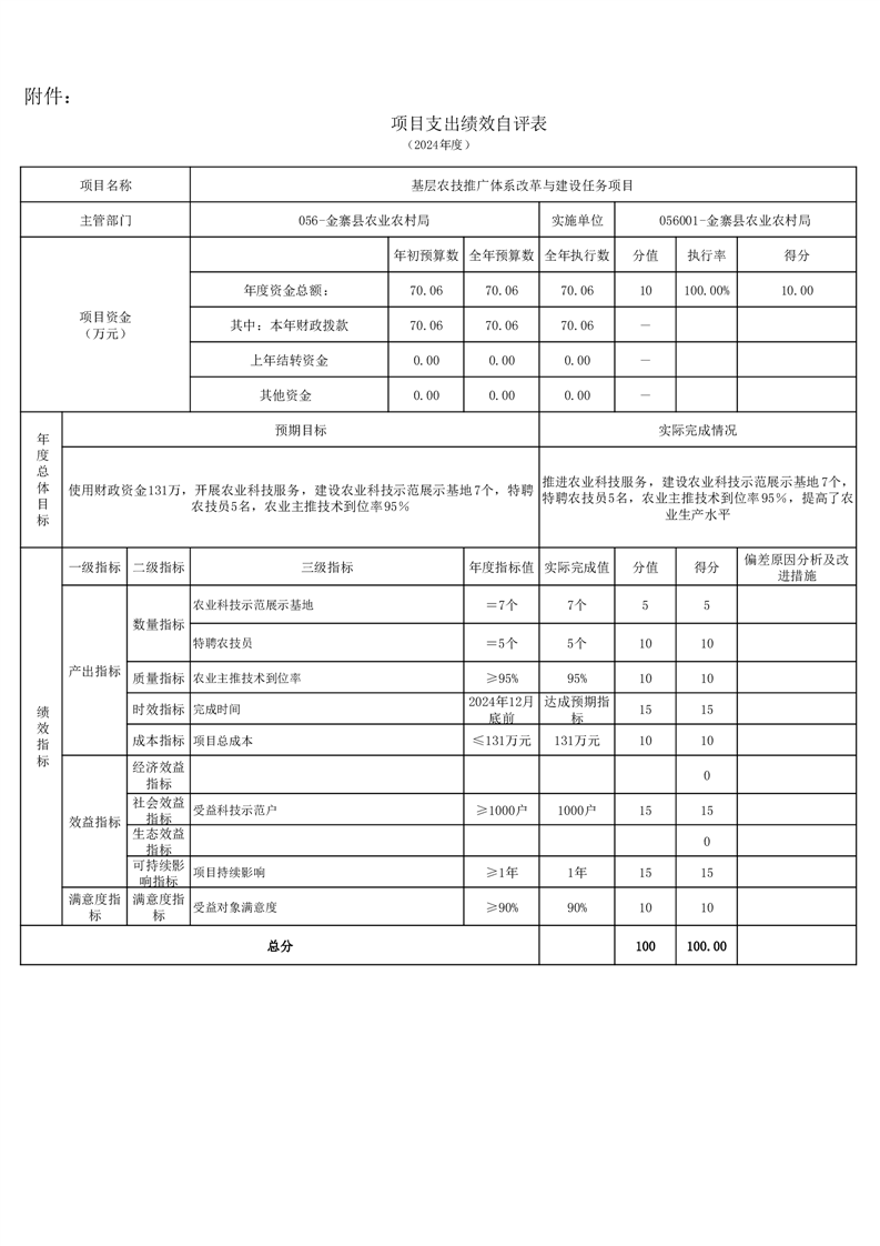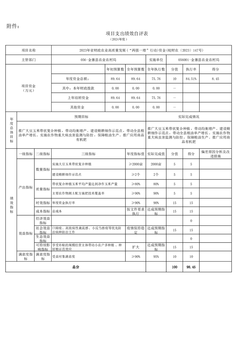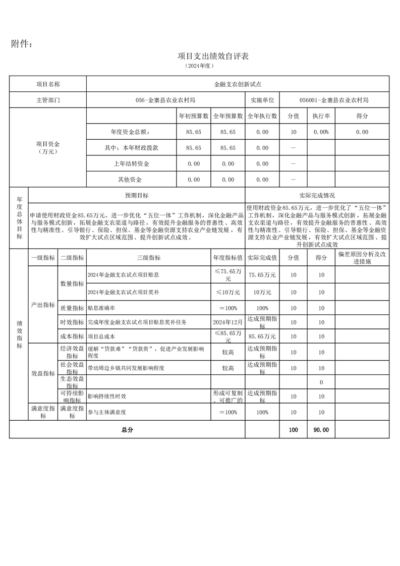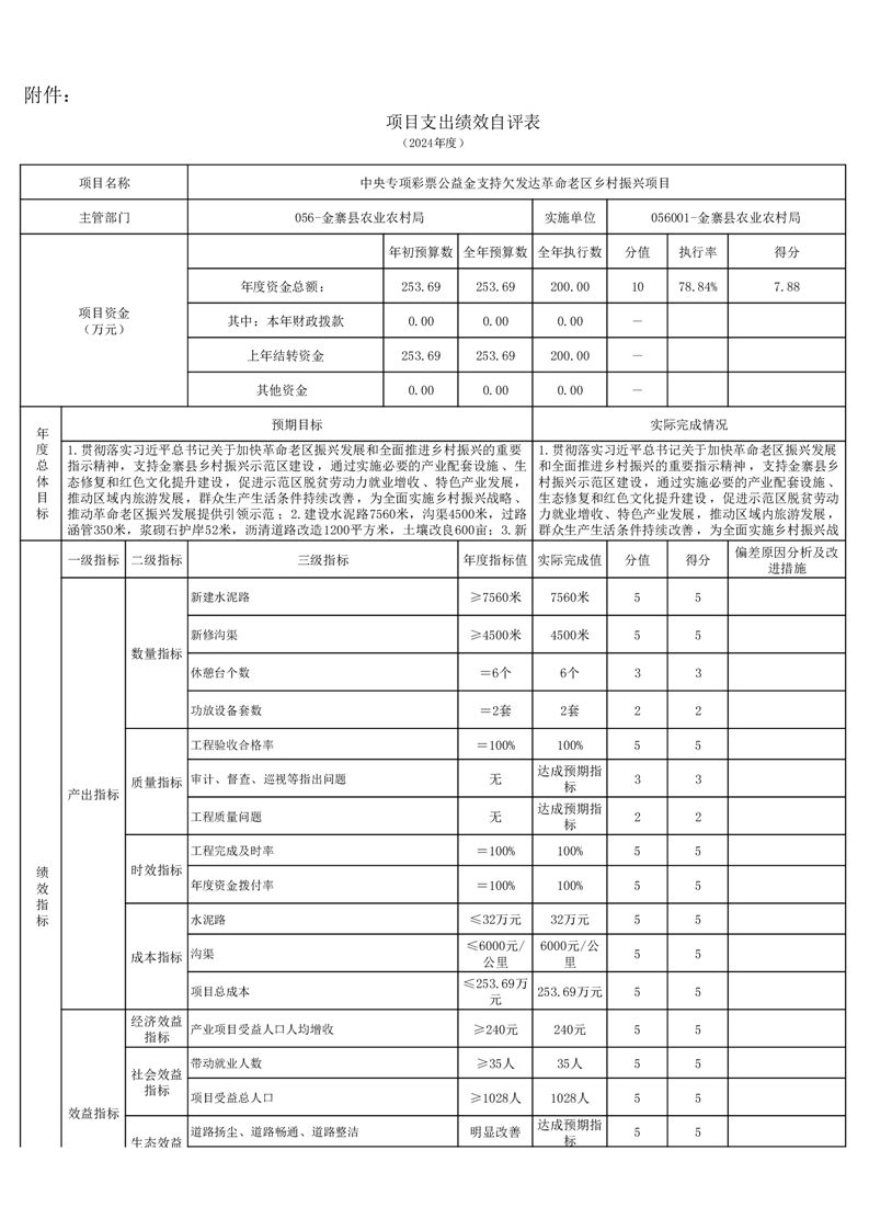 金寨縣農業農村局2024年項目支出績效自評表和自評報告