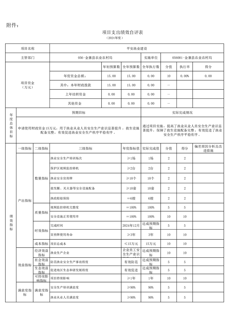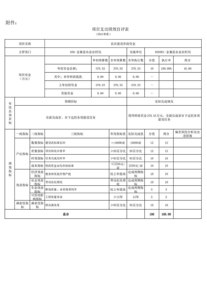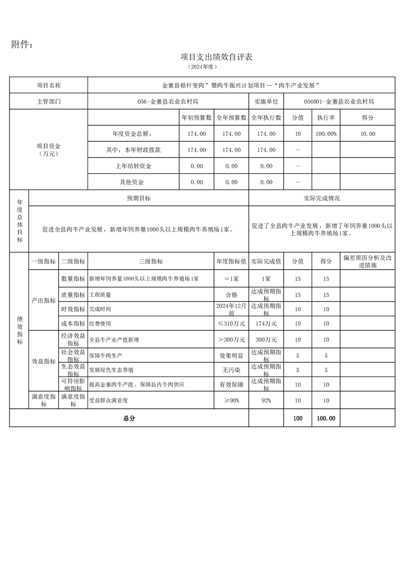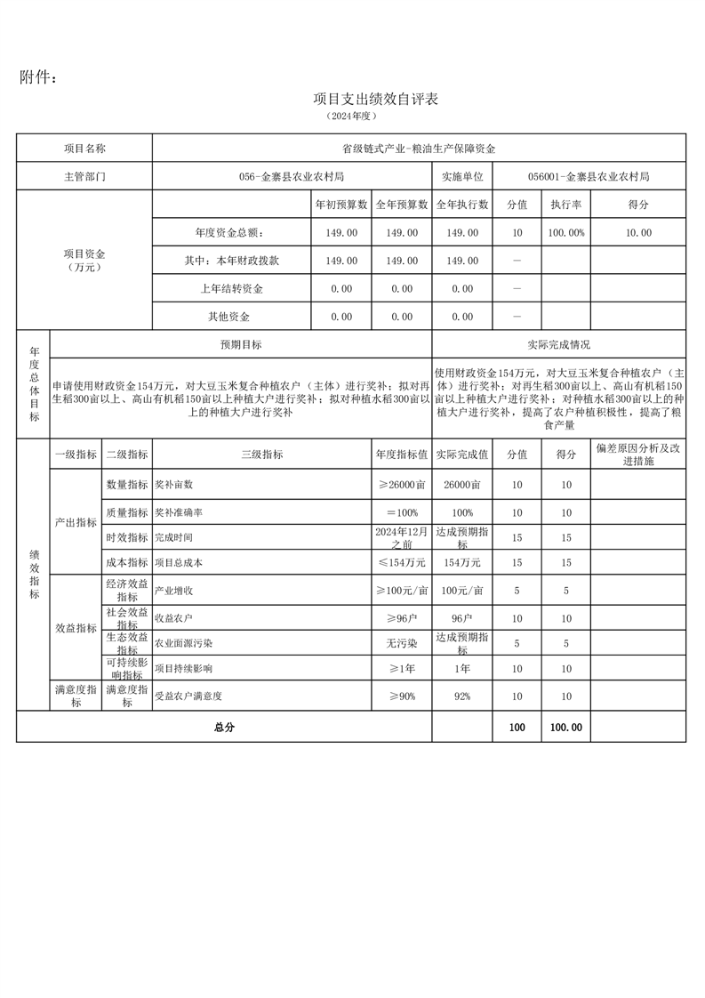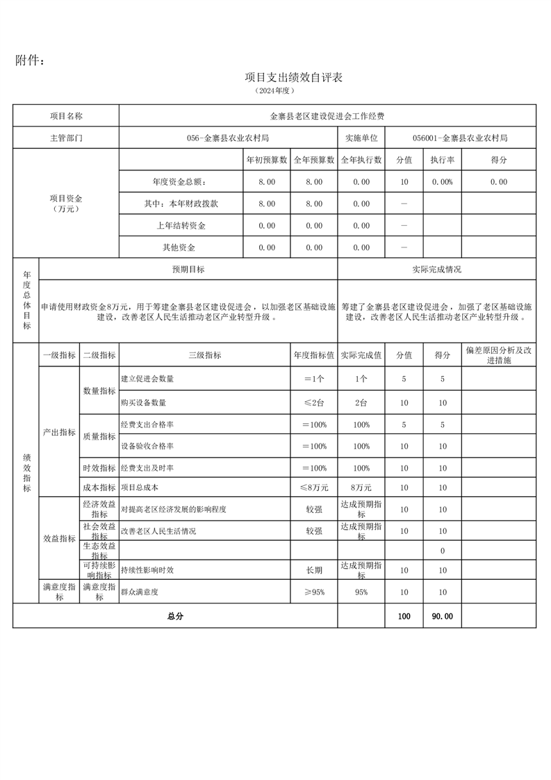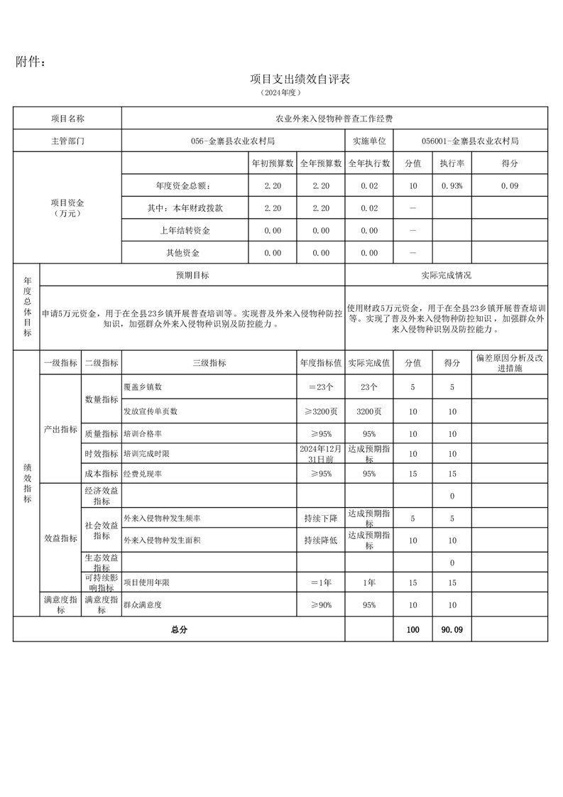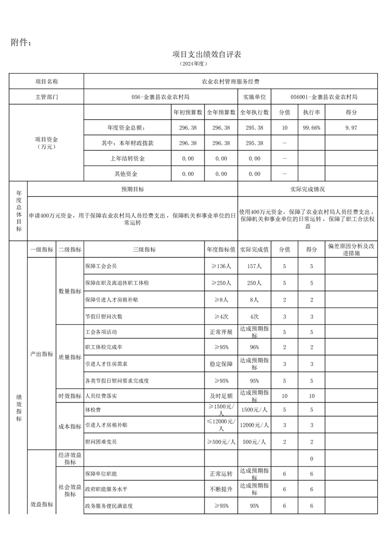 金寨縣農業農村局2024年項目支出績效自評表和自評報告