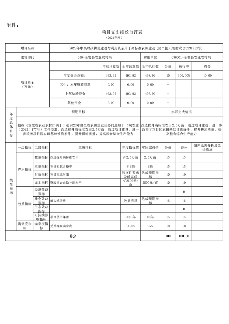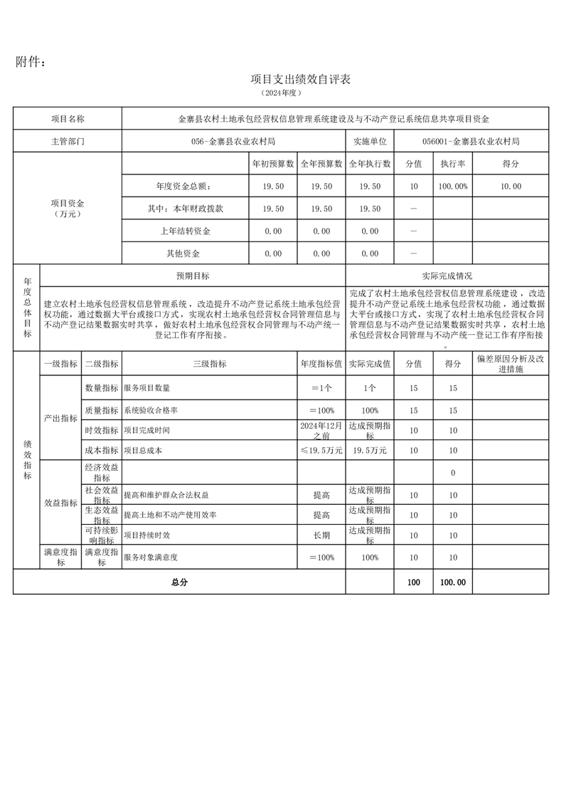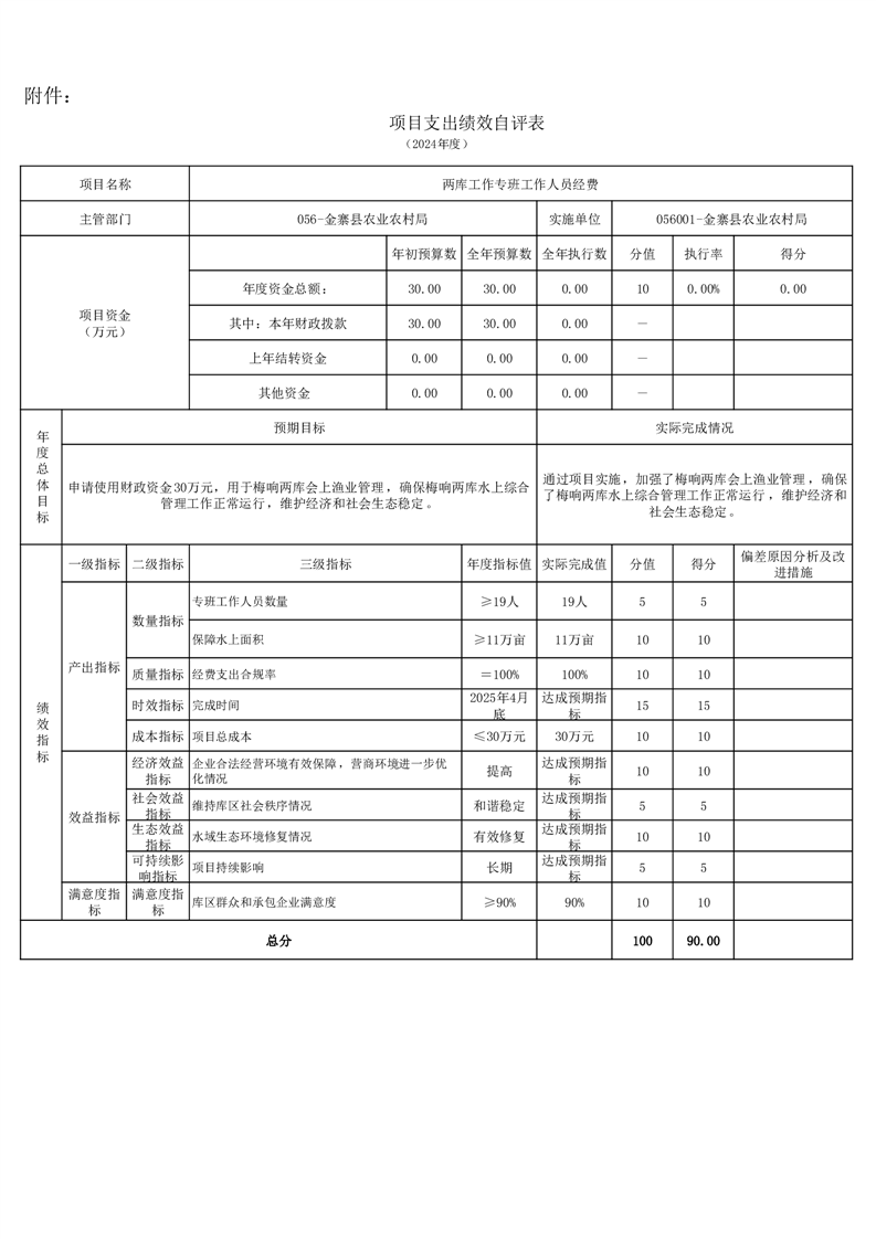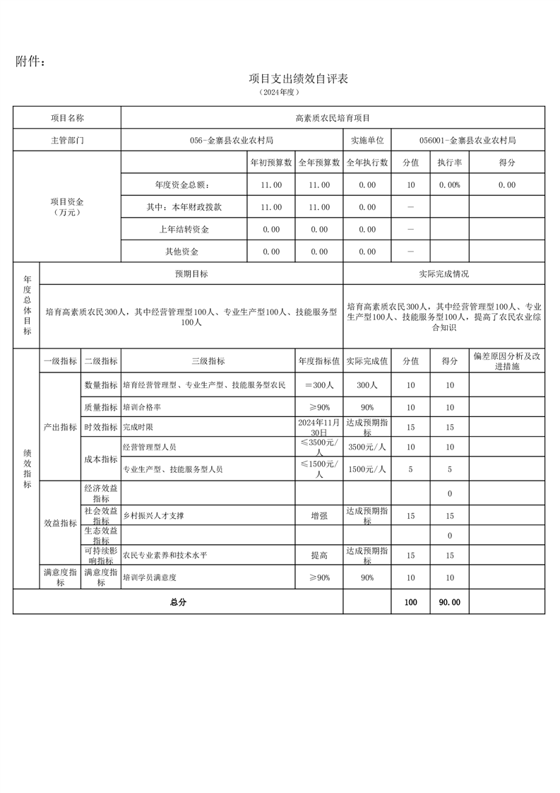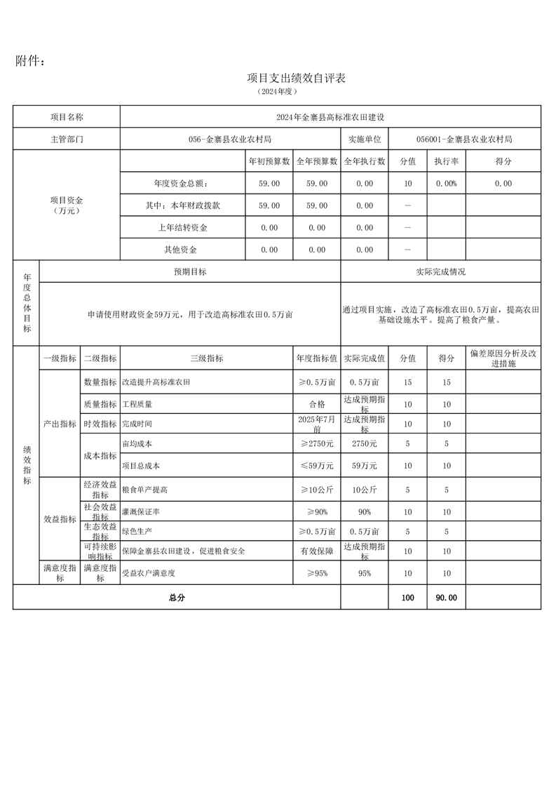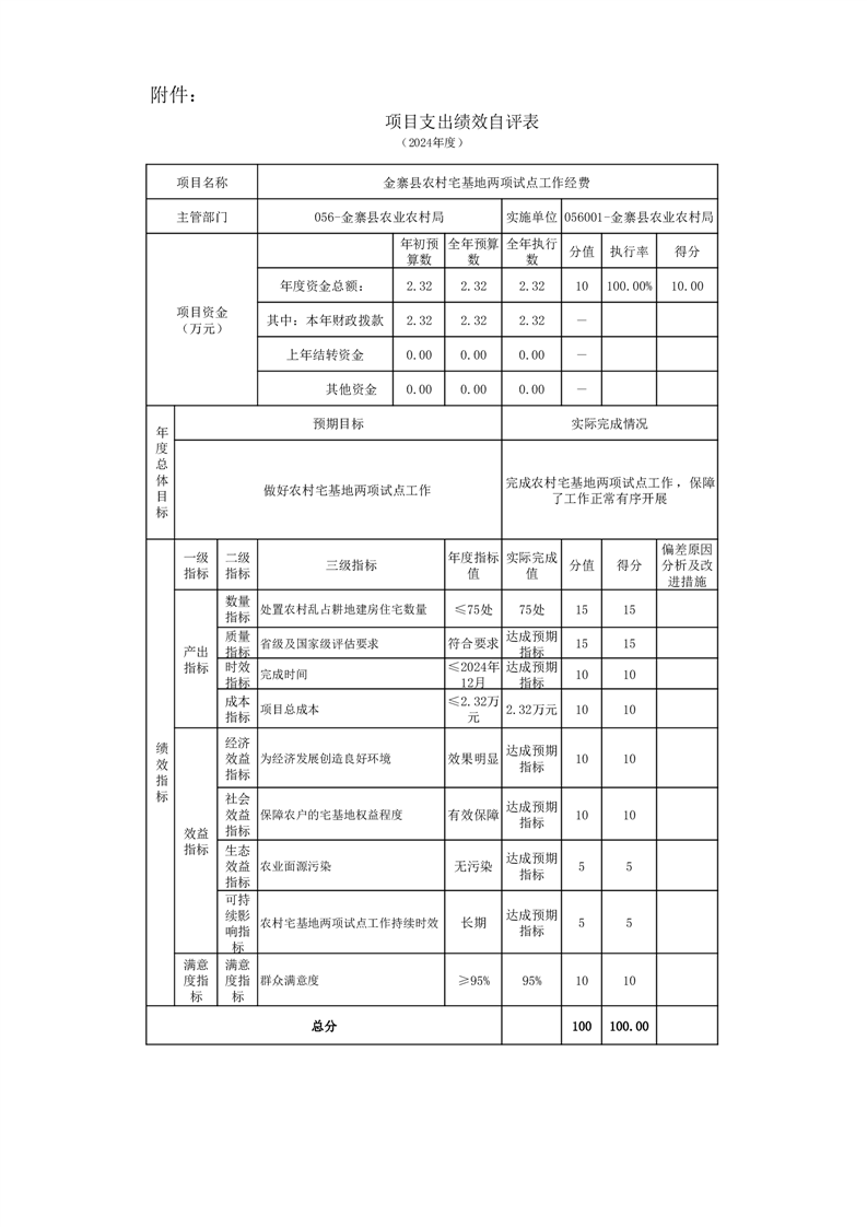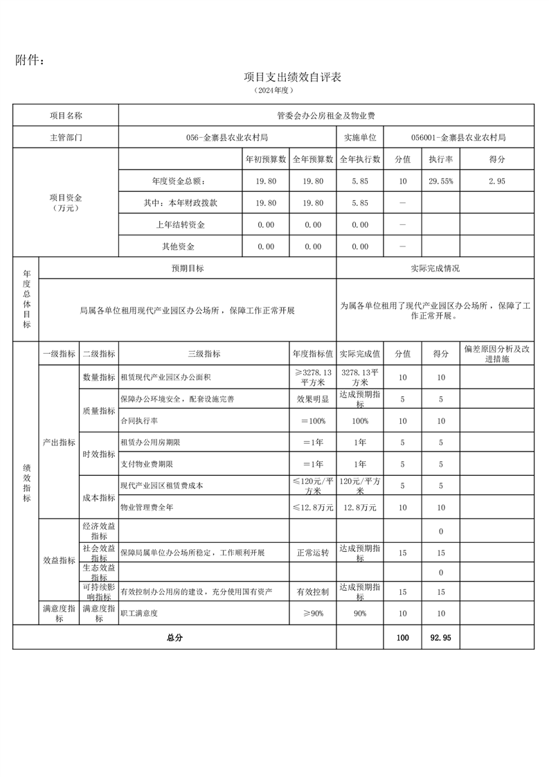 金寨縣農業農村局2024年項目支出績效自評表和自評報告