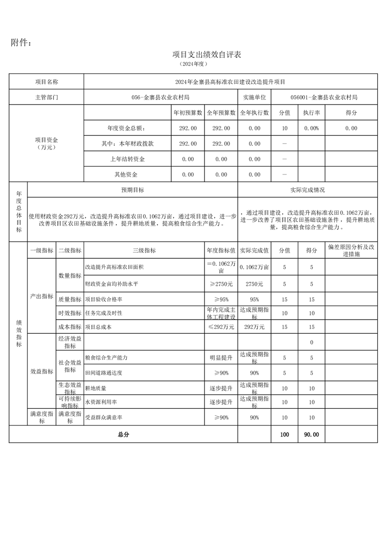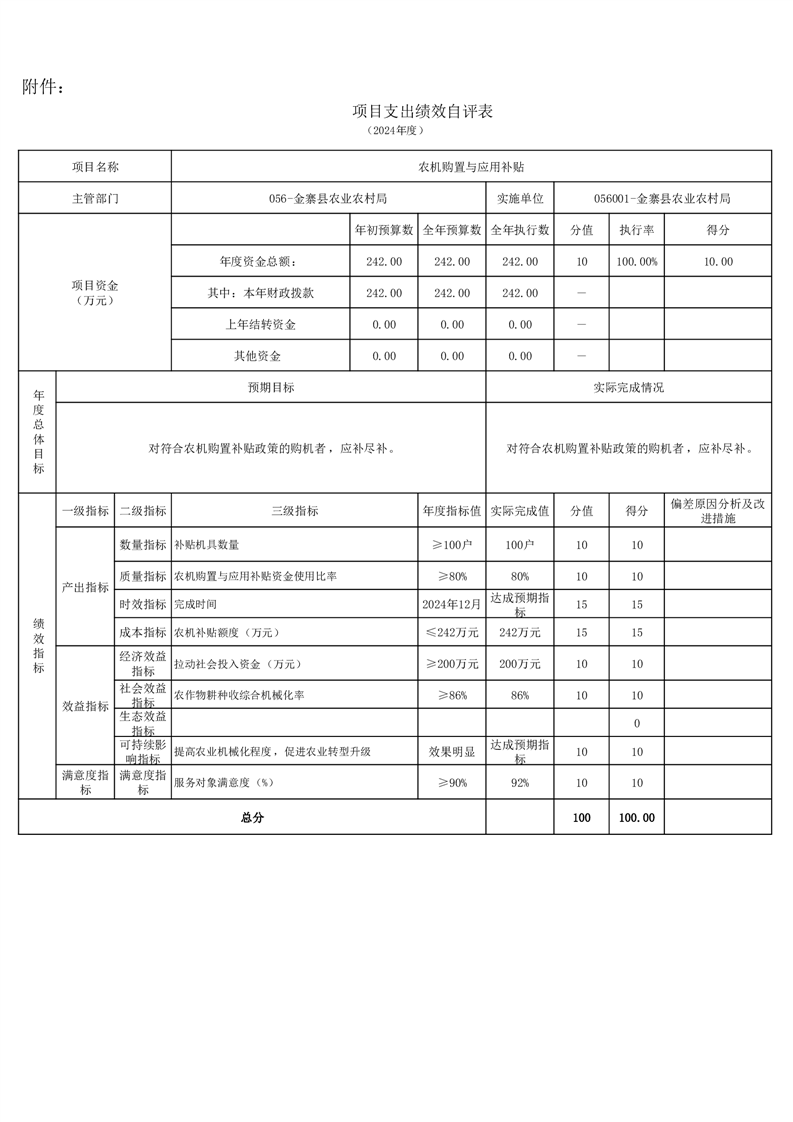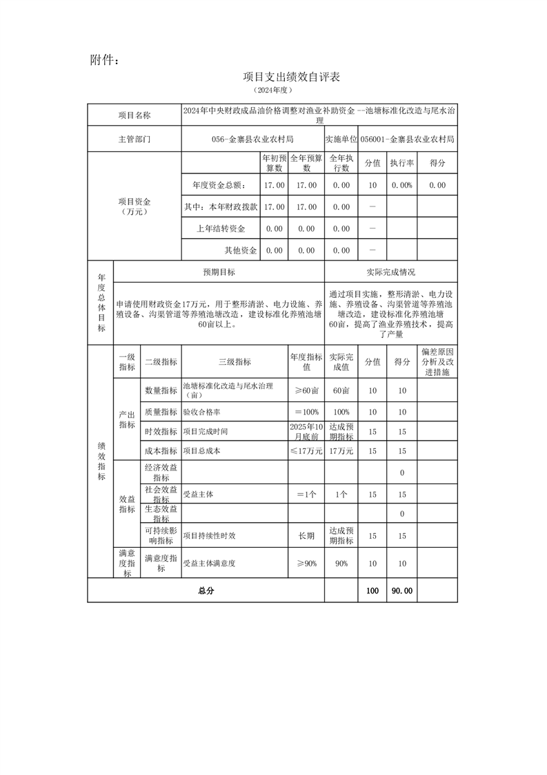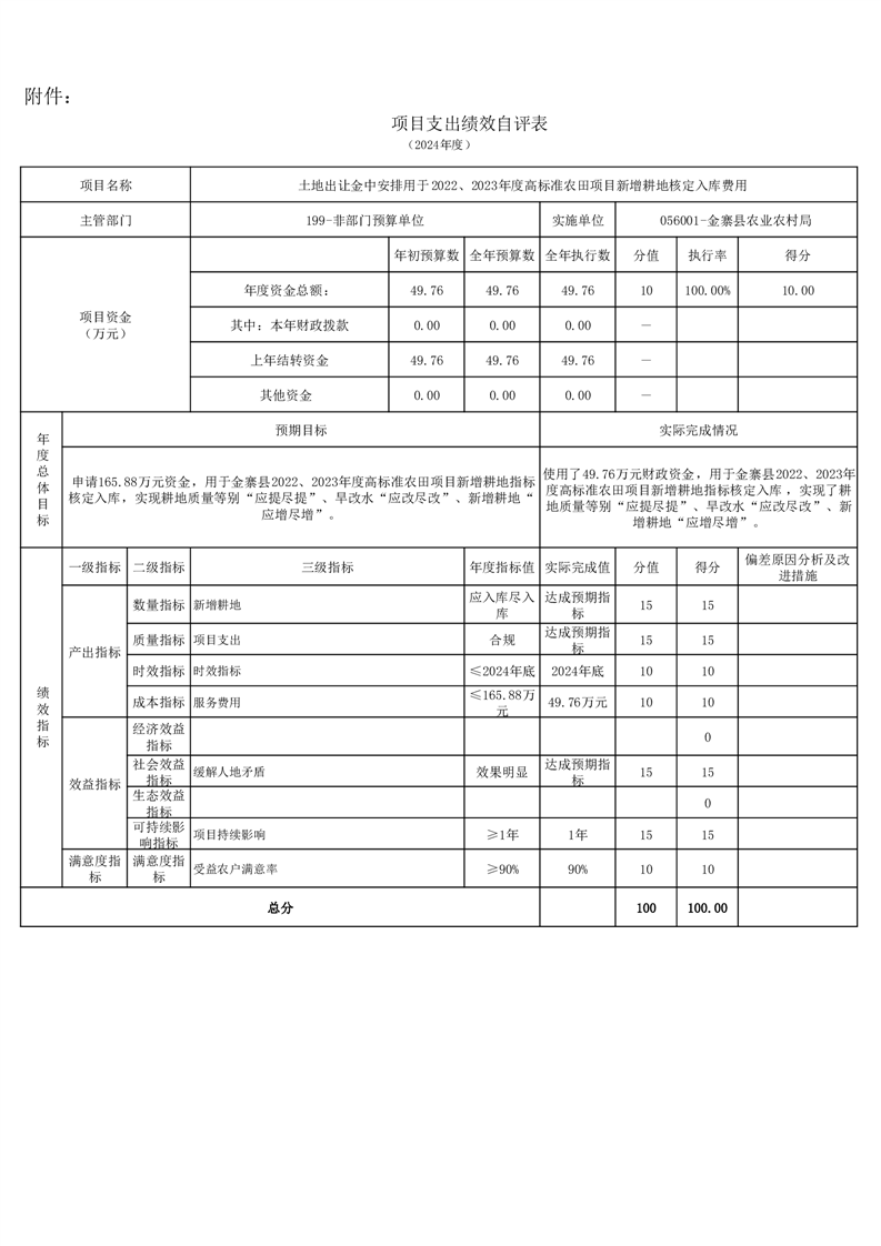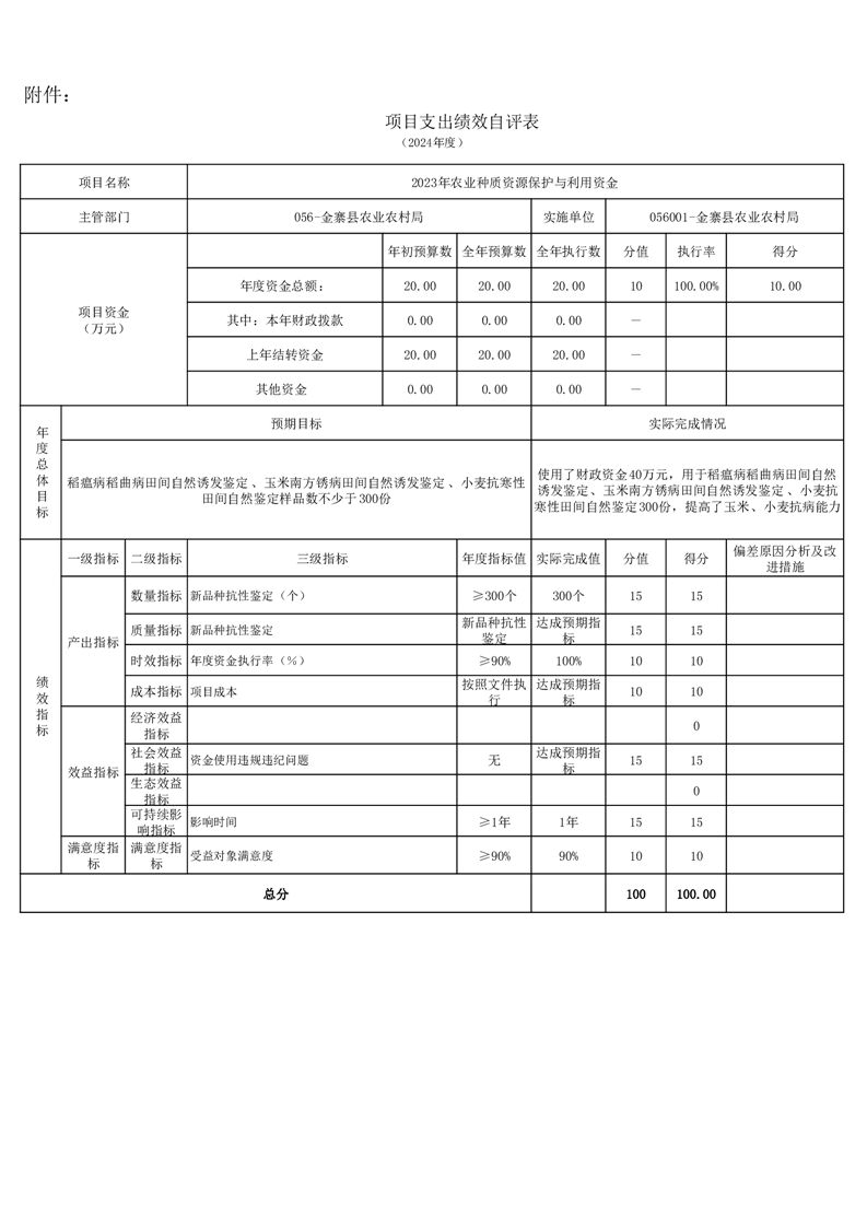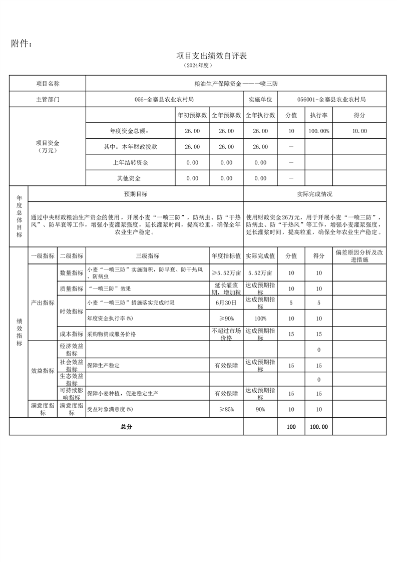 金寨縣農業農村局2024年項目支出績效自評表和自評報告