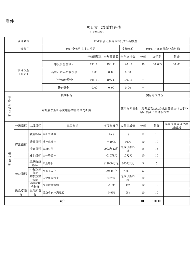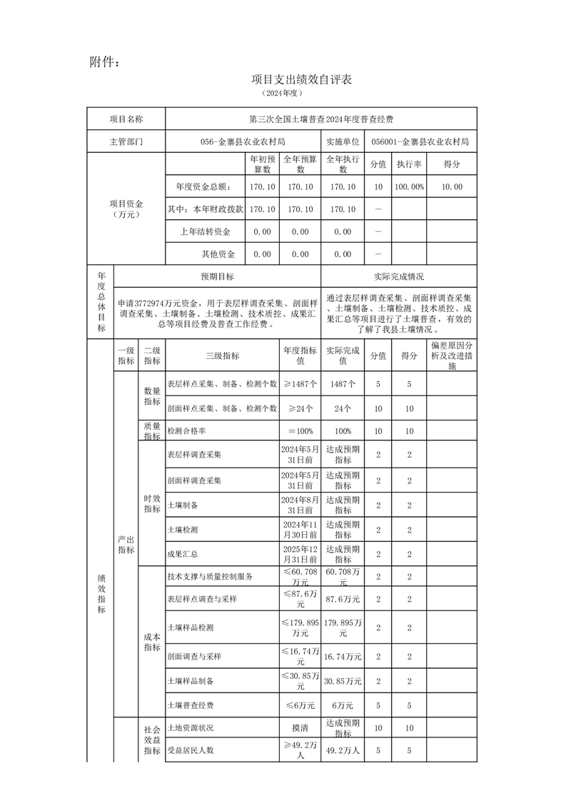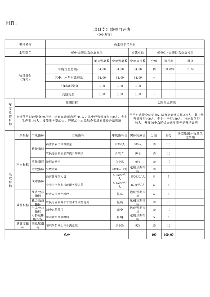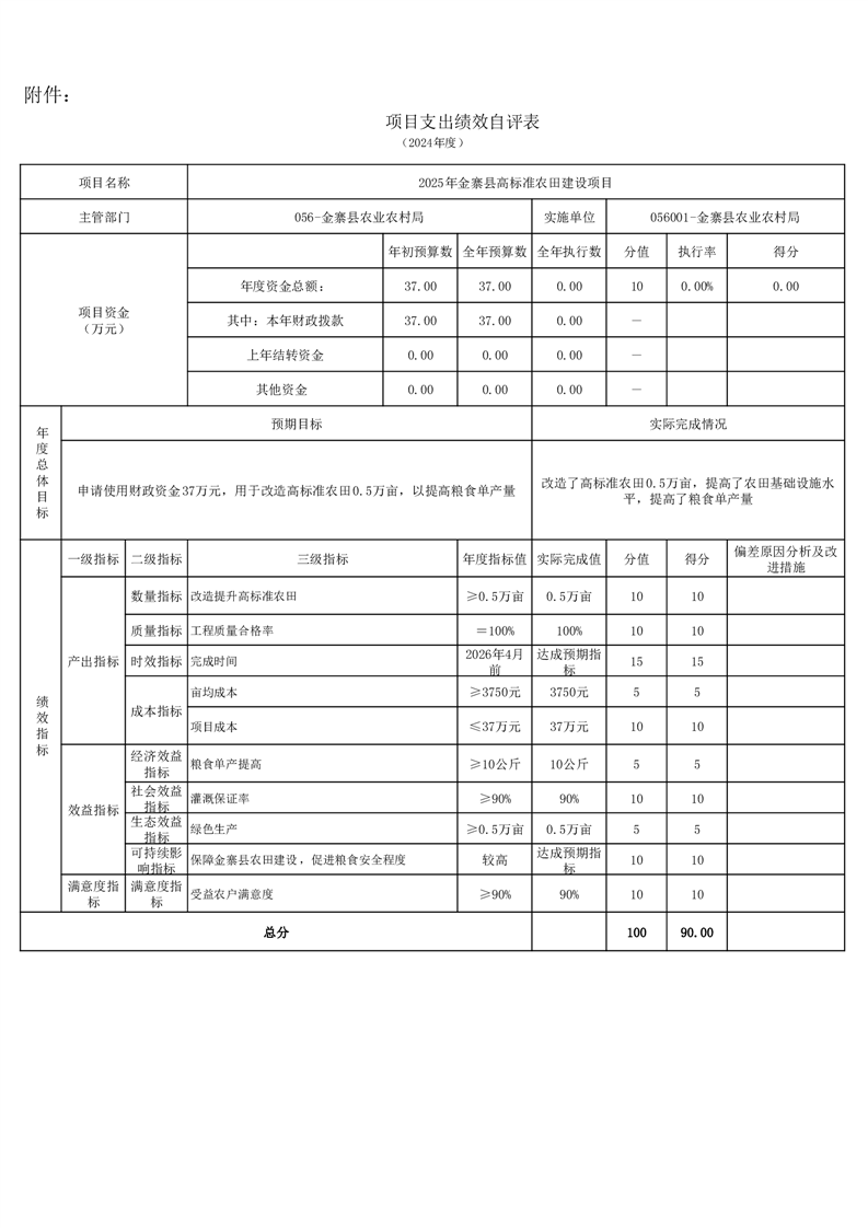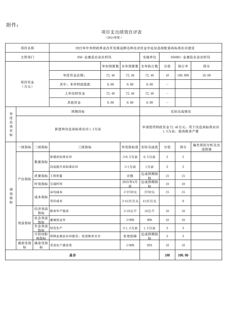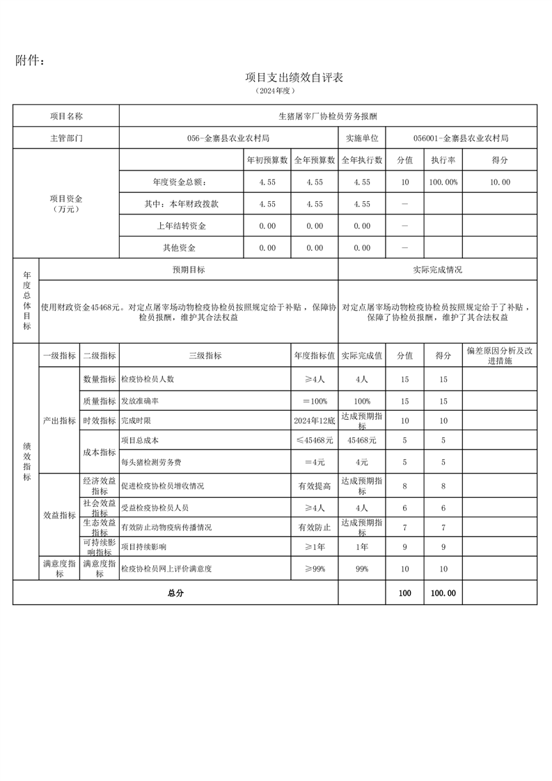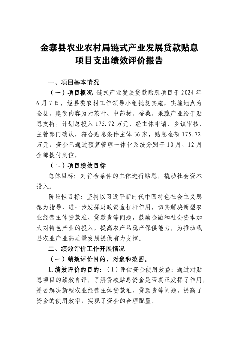 金寨縣農業農村局2024年項目支出績效自評表和自評報告