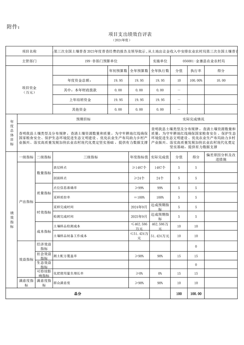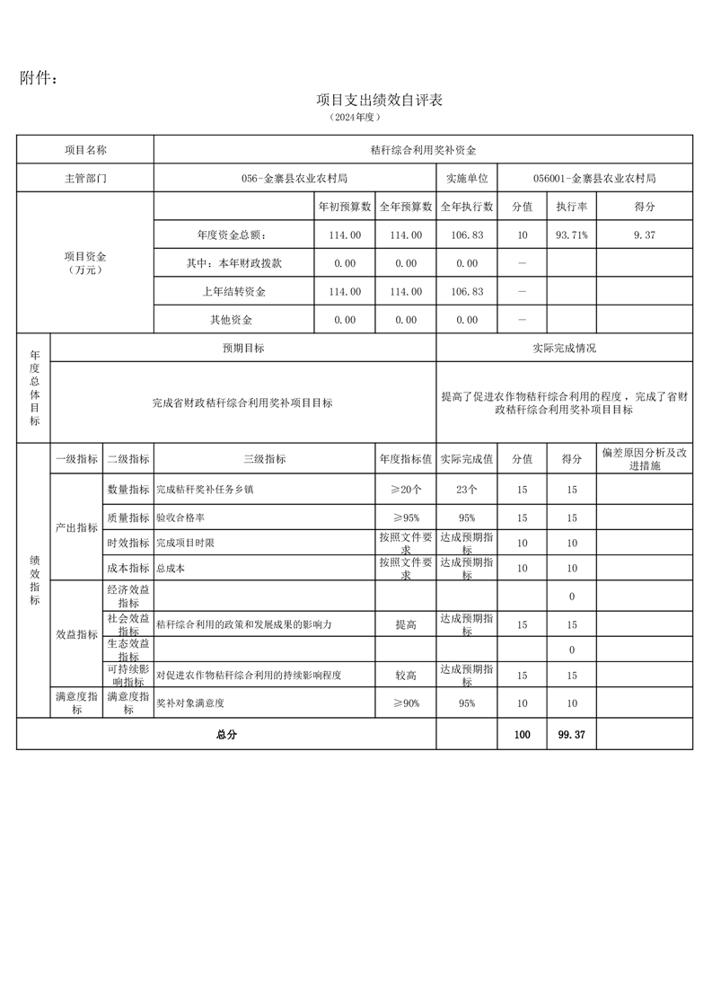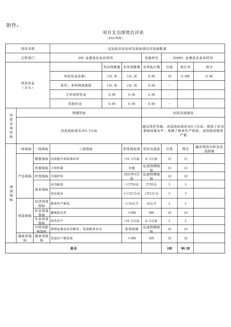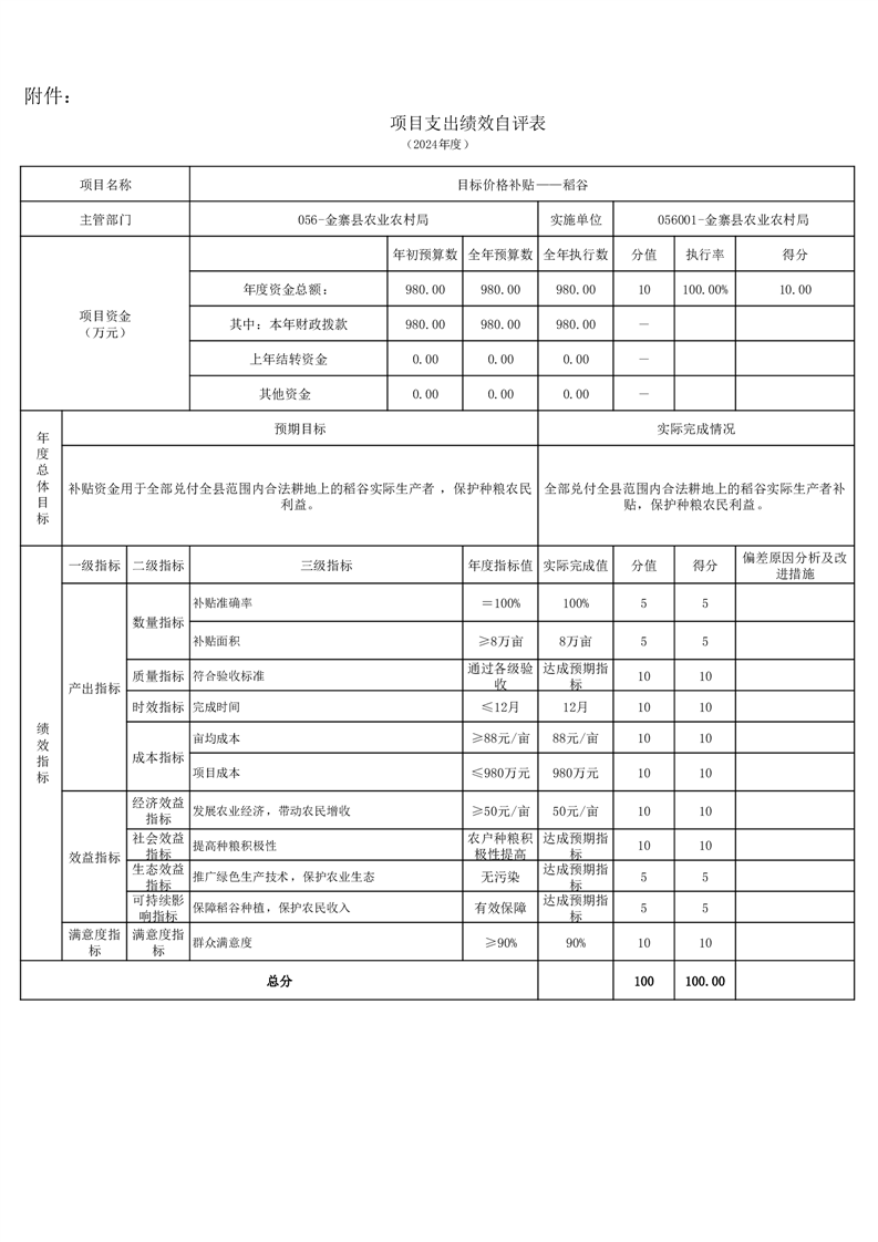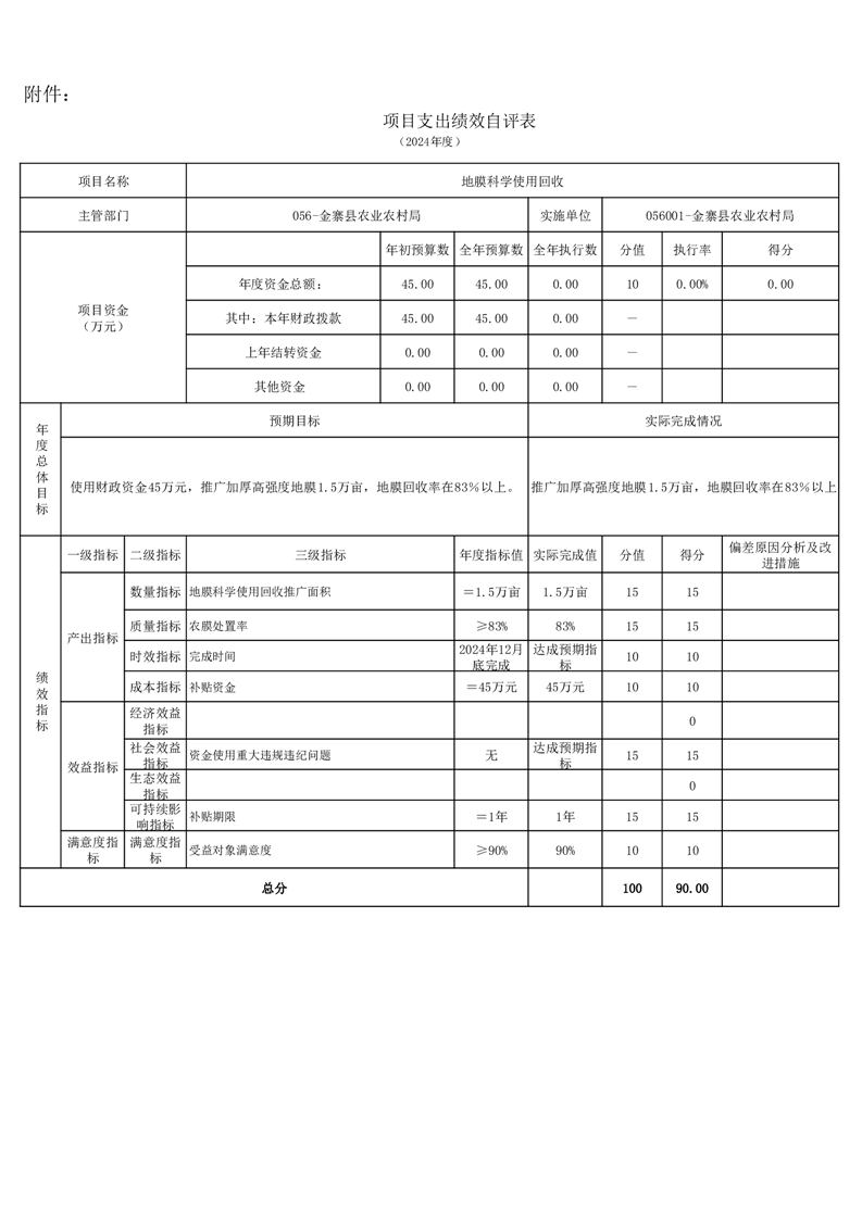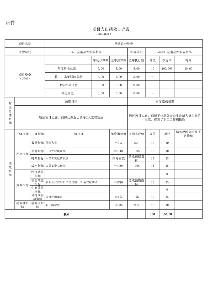 金寨縣農業農村局2024年項目支出績效自評表和自評報告