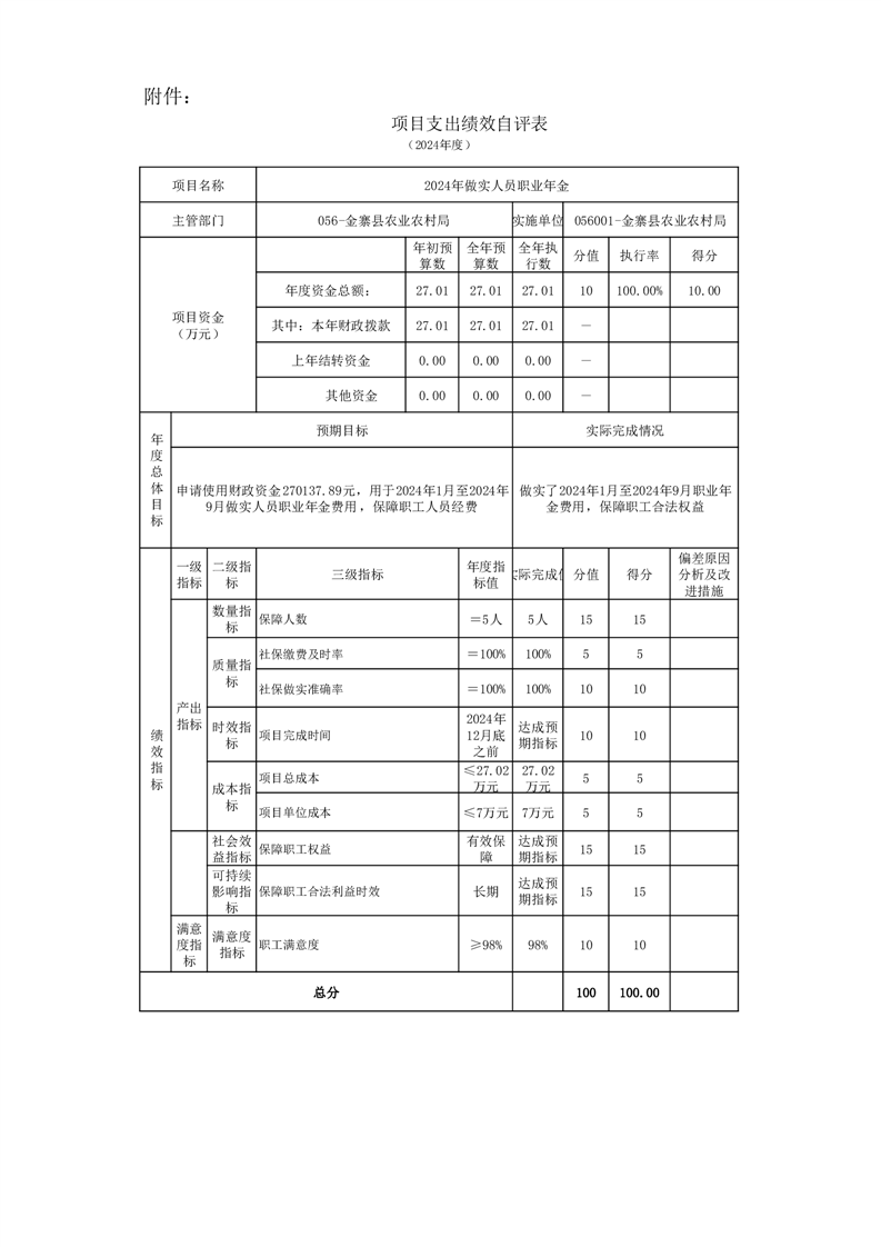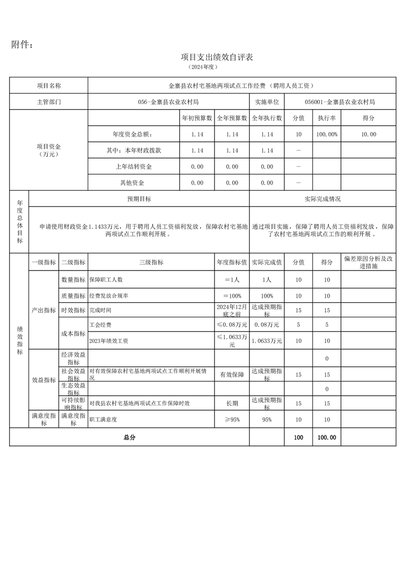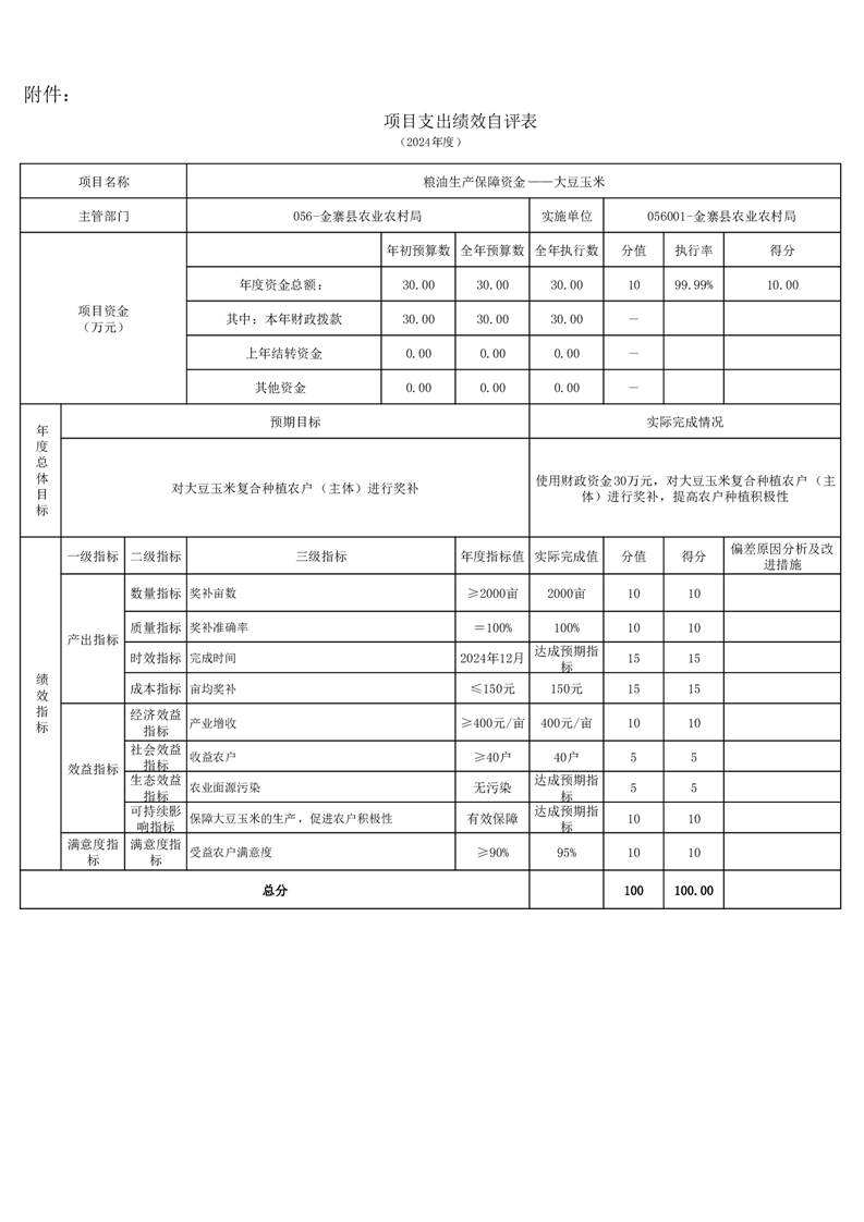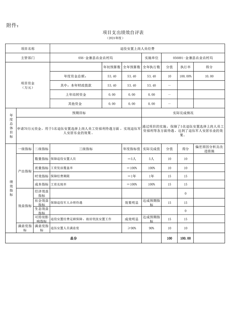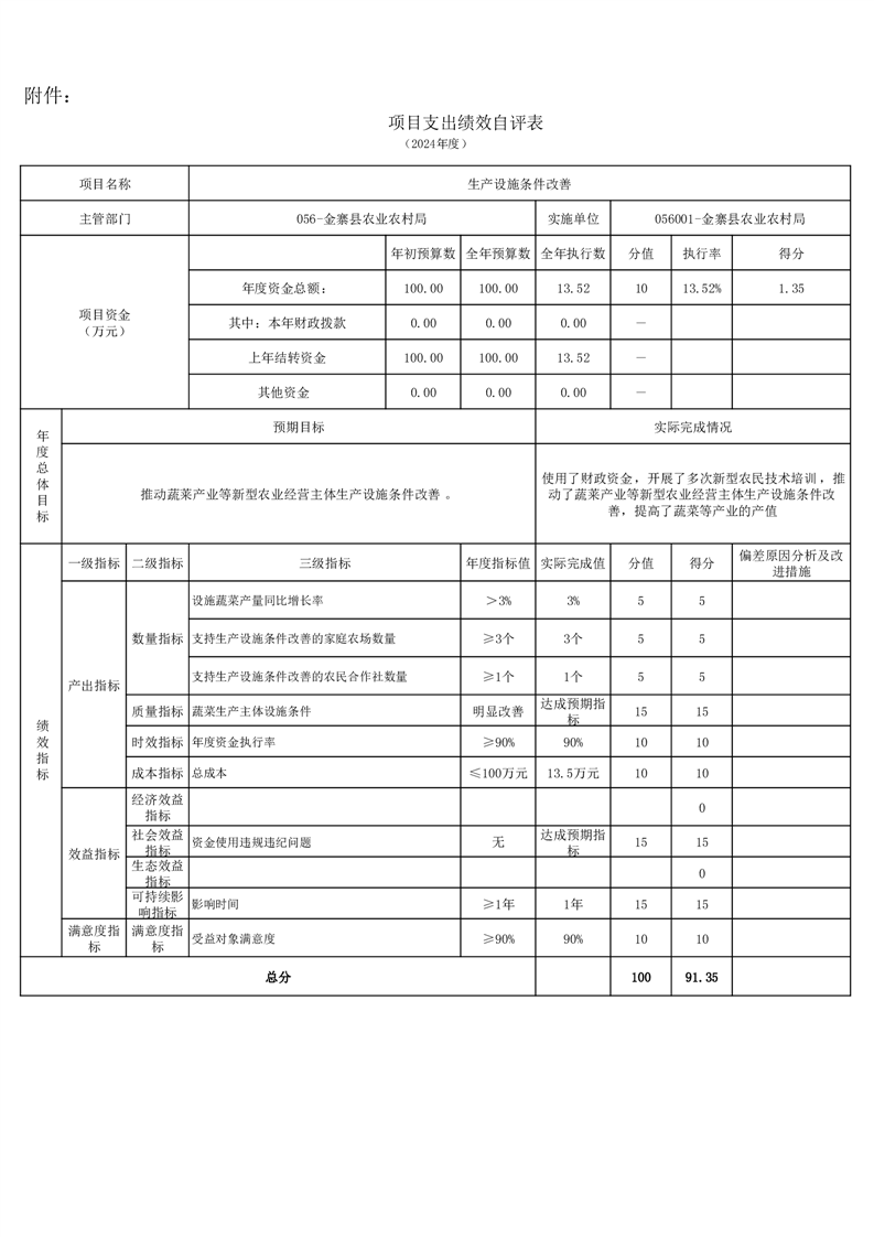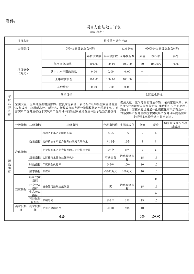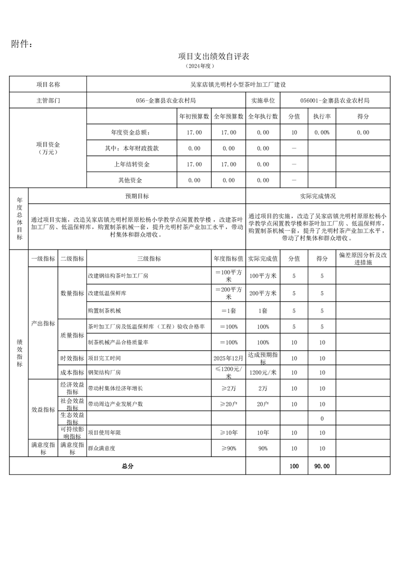 金寨縣農業農村局2024年項目支出績效自評表和自評報告