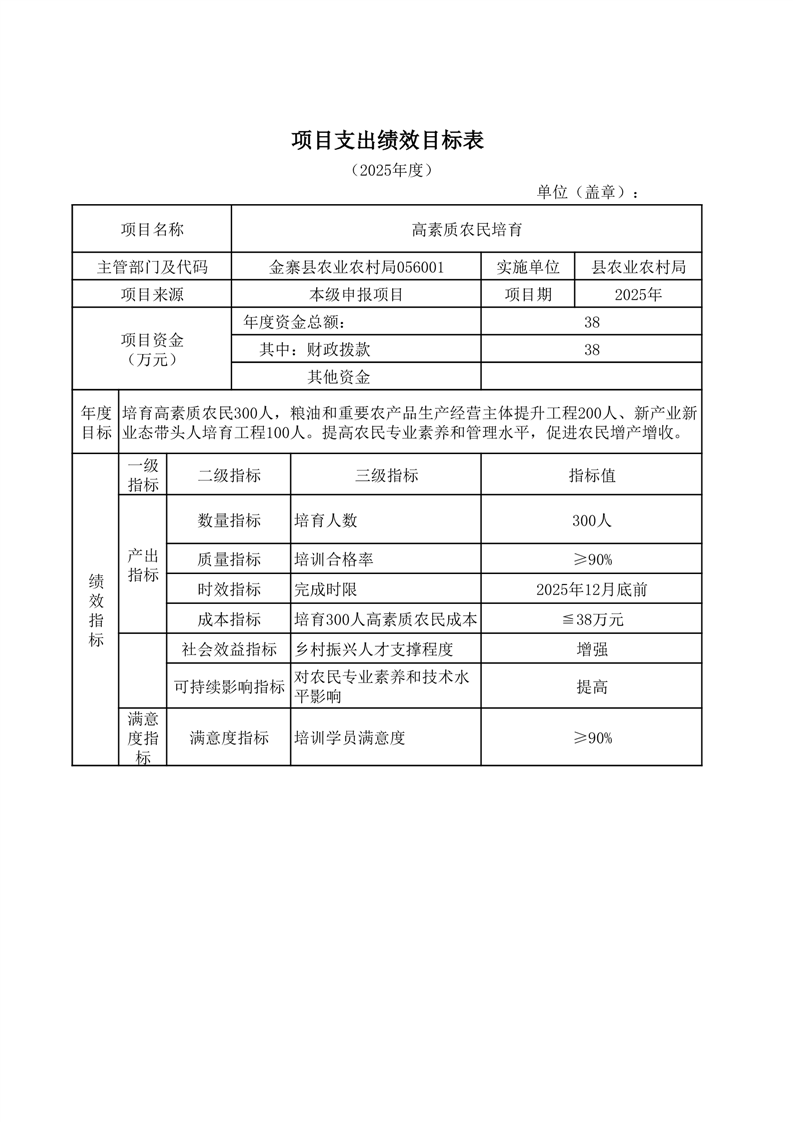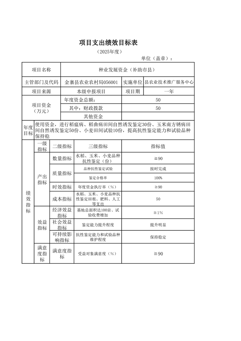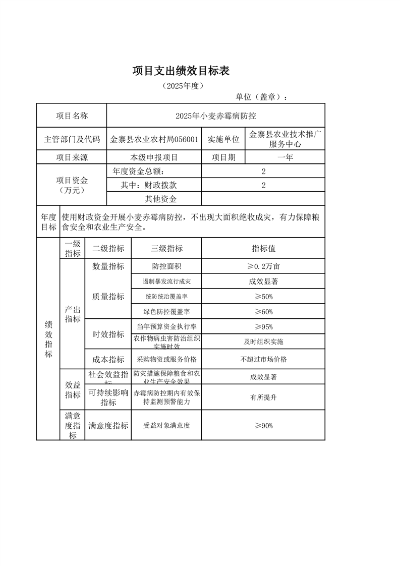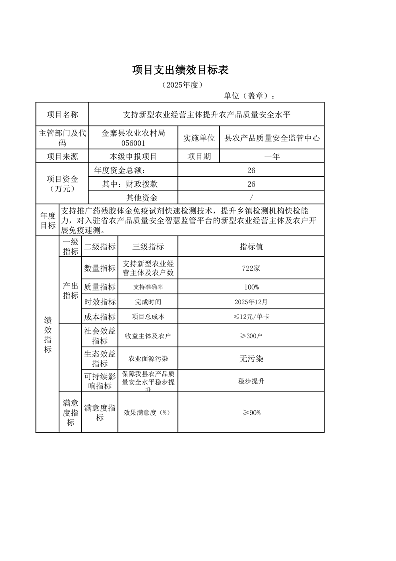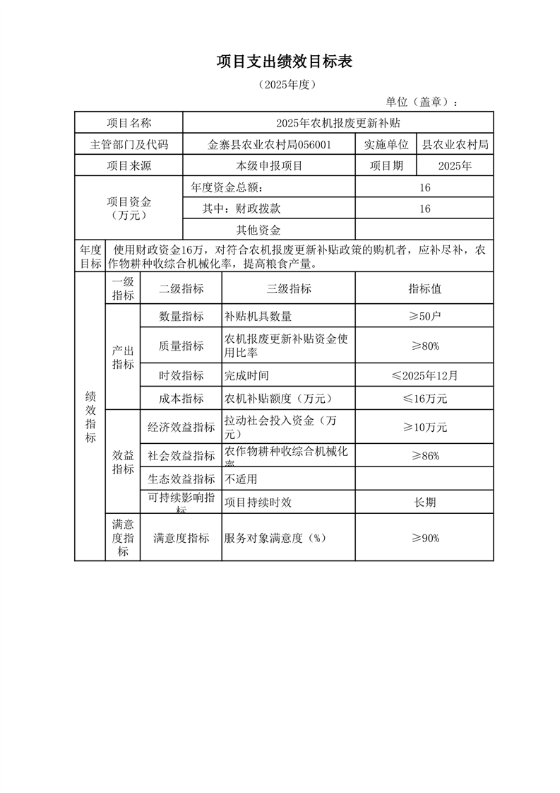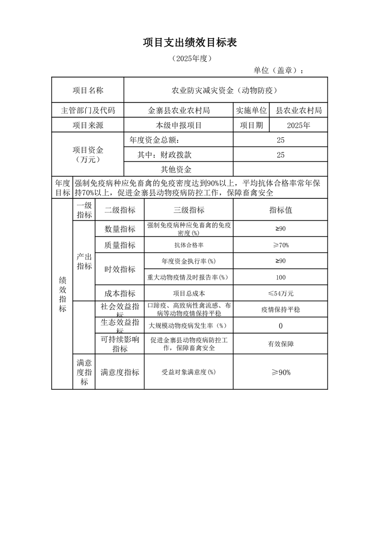 金寨縣農業農村局2025年第二季度追加項目績效目標表