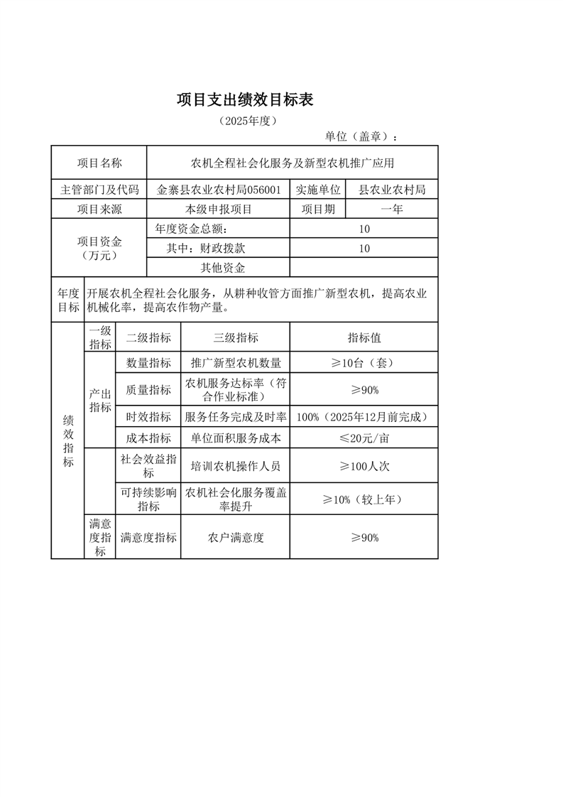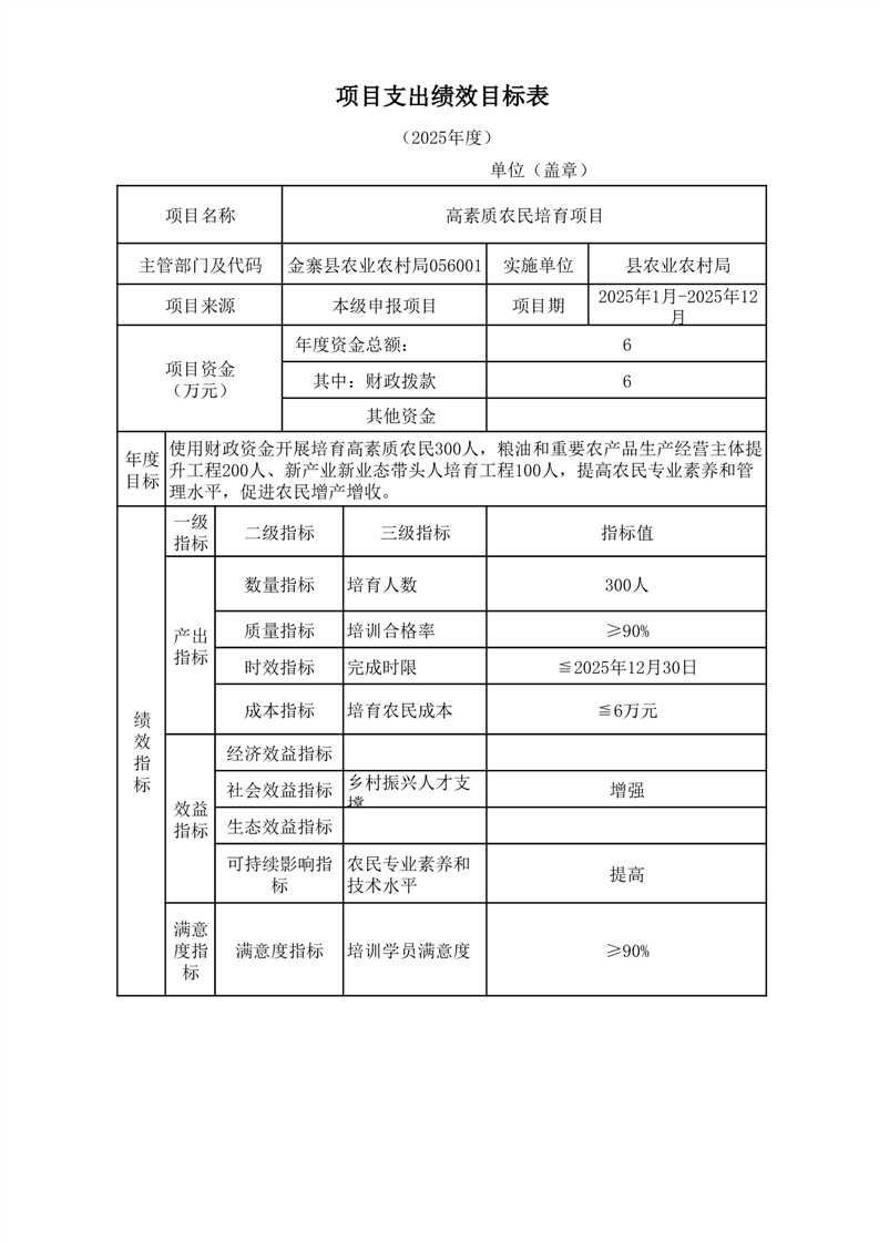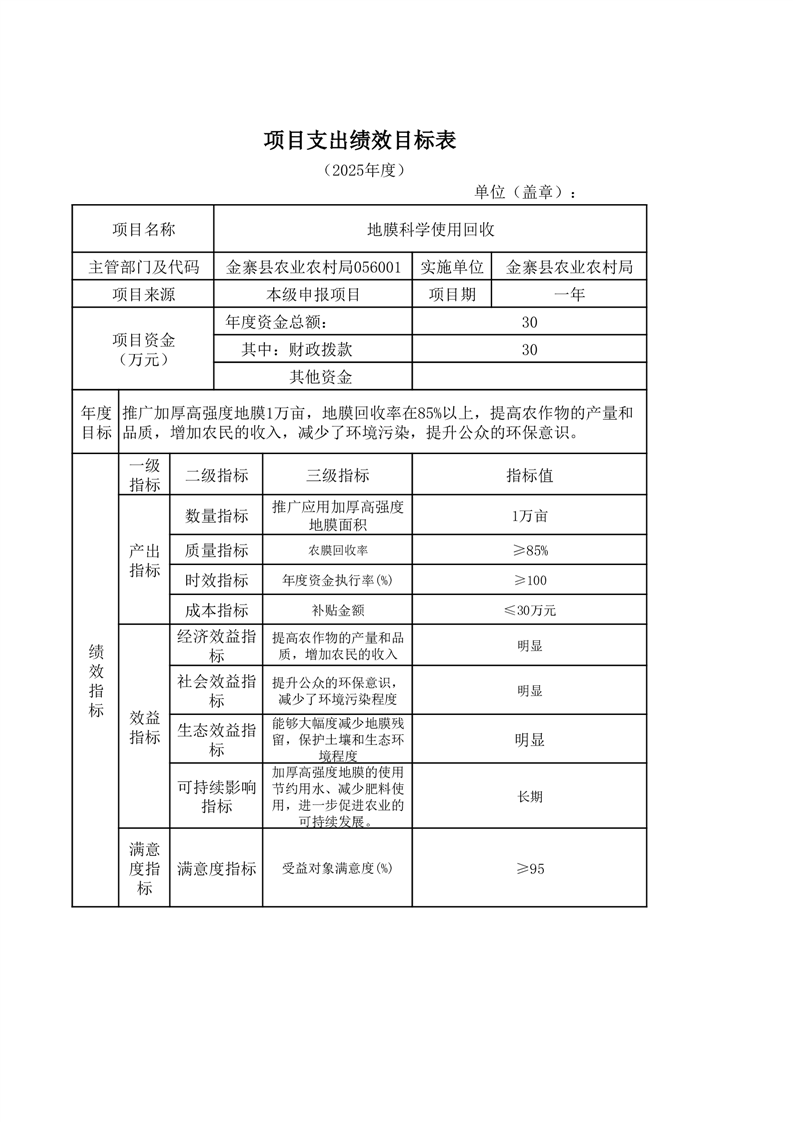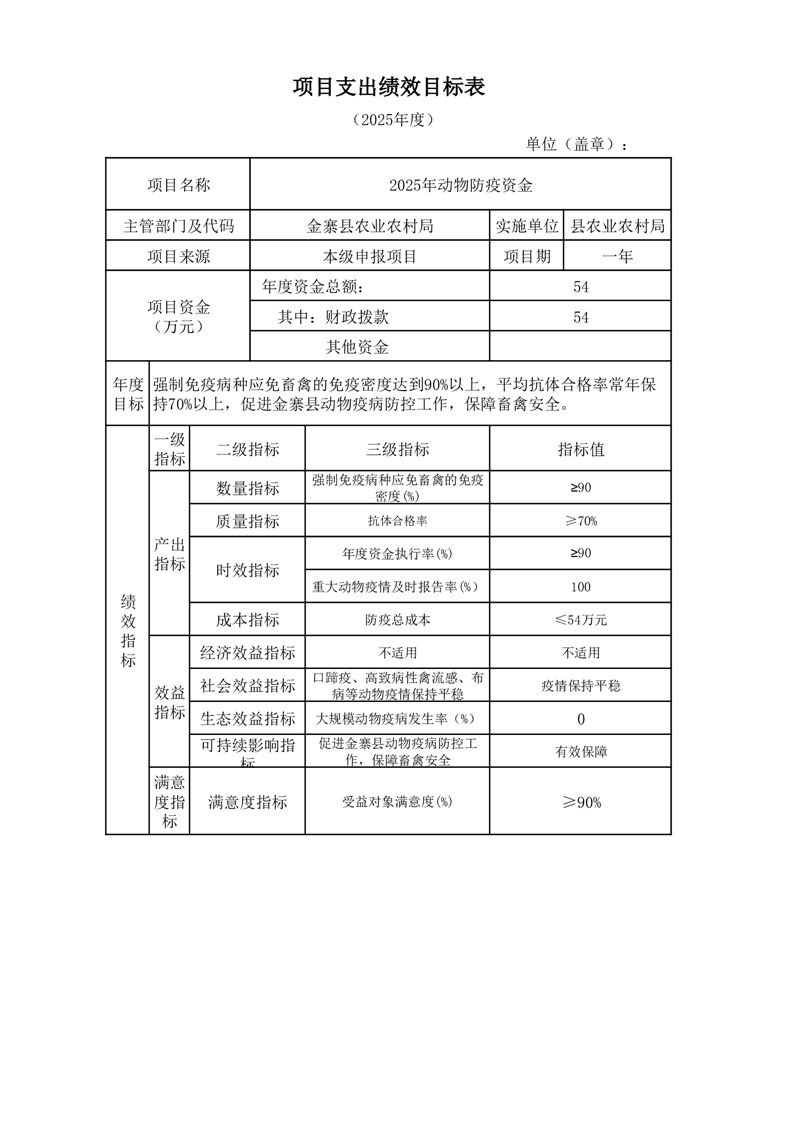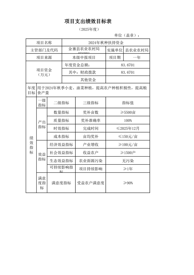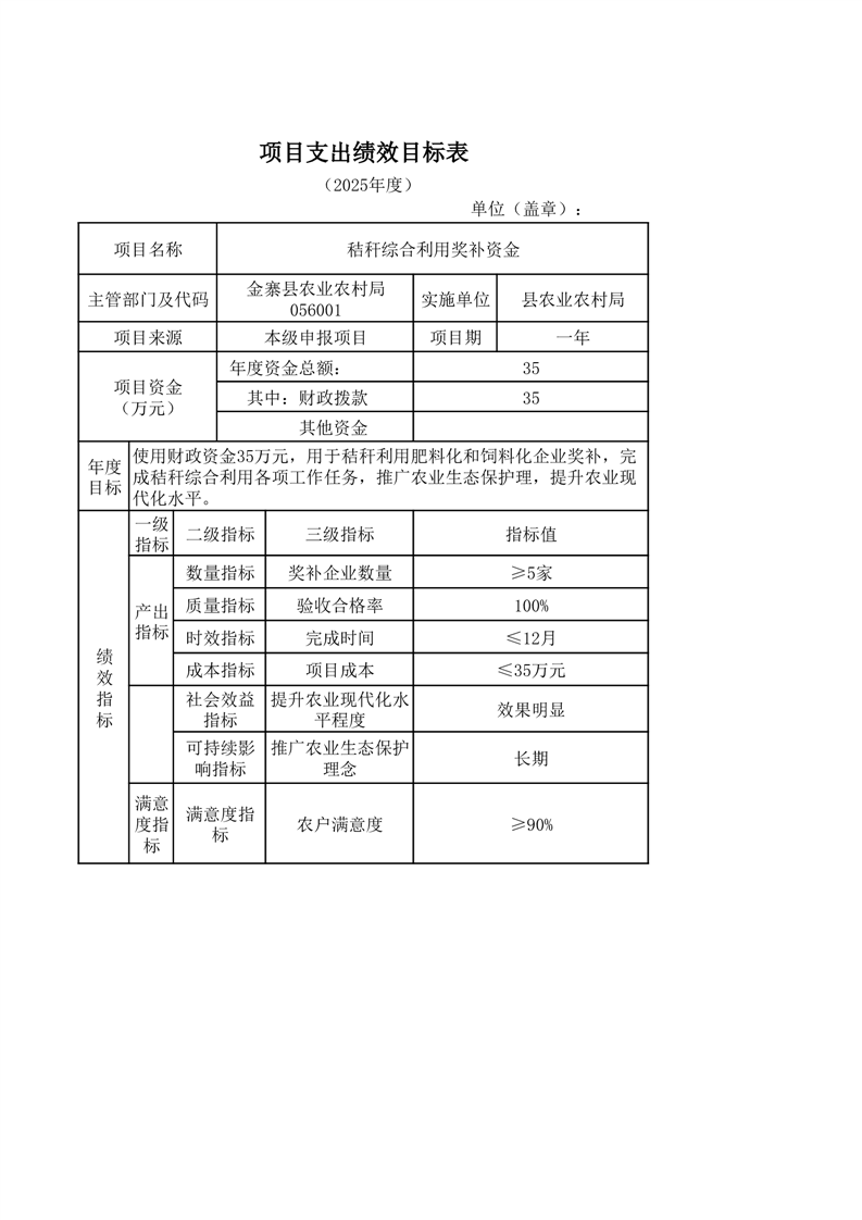 金寨縣農業農村局2025年第二季度追加項目績效目標表
