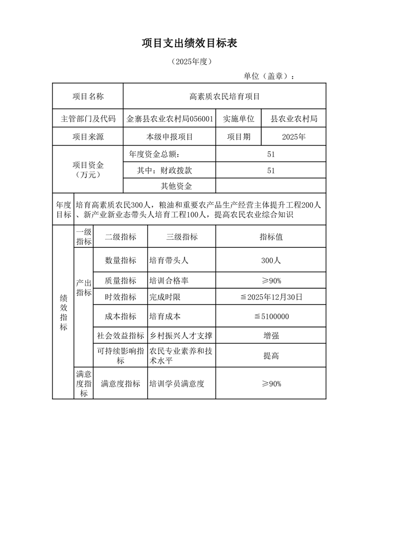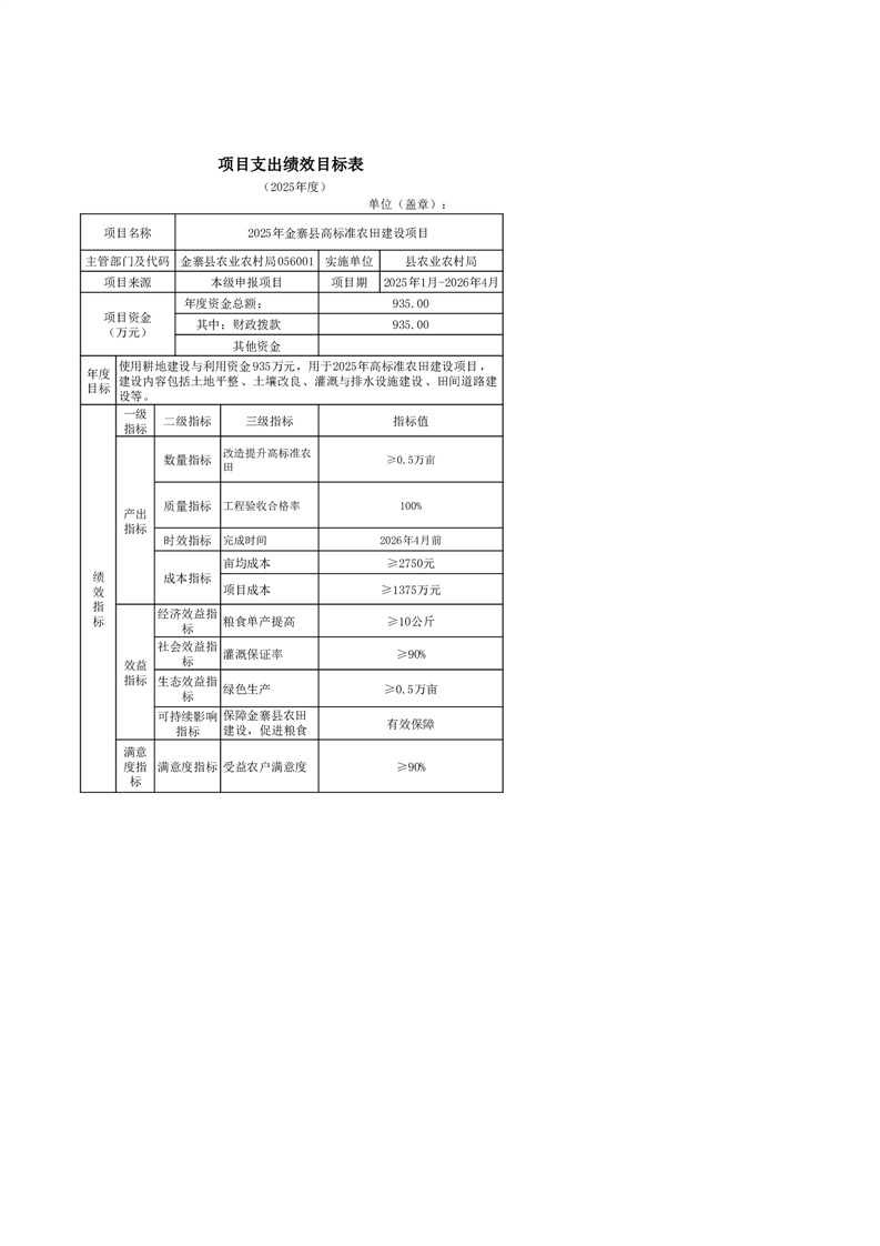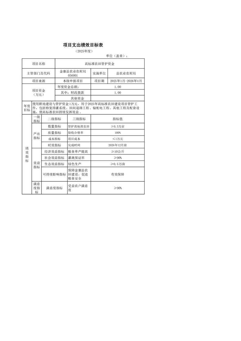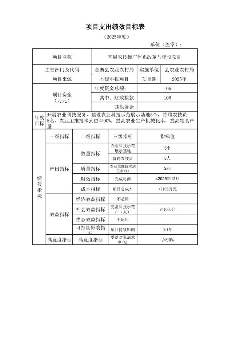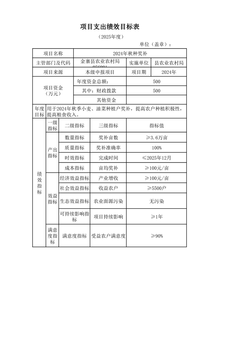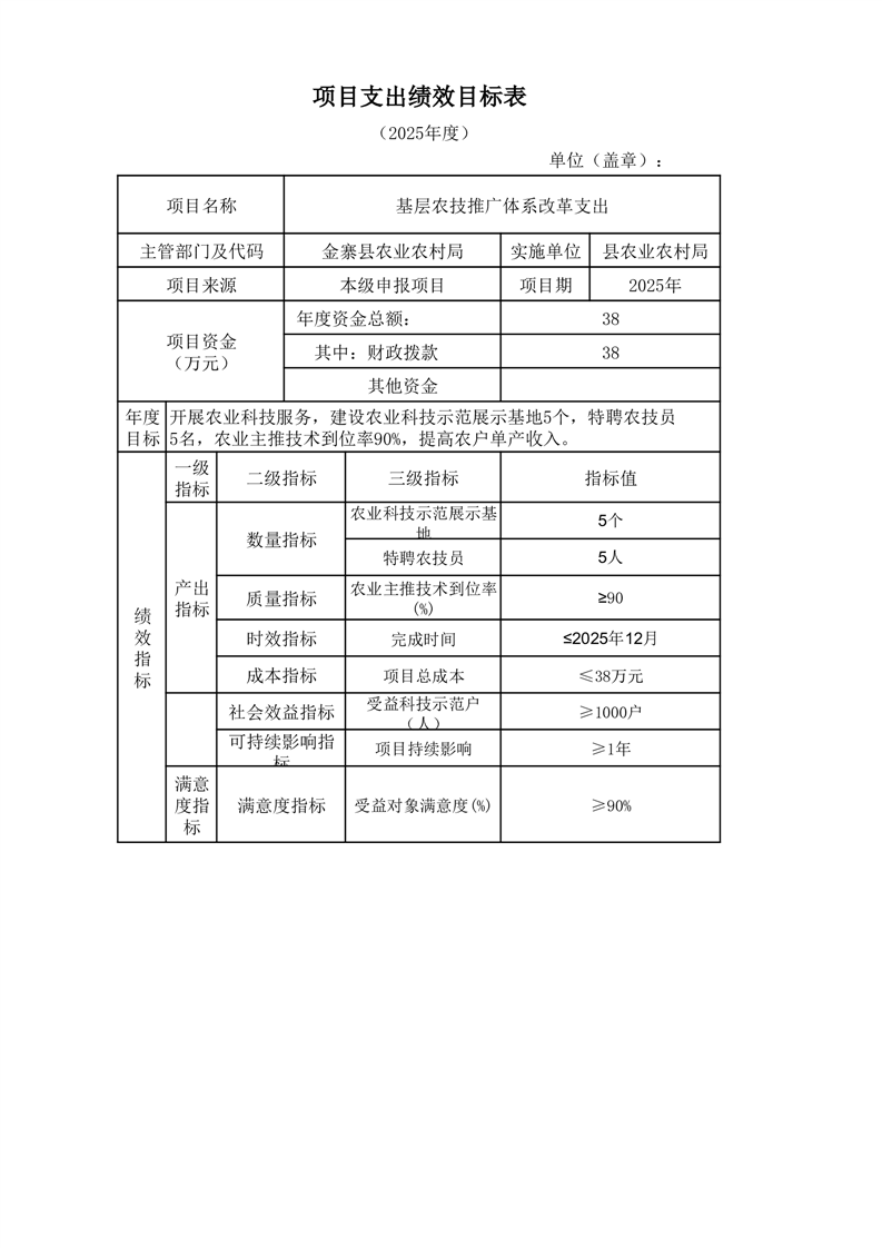 金寨縣農業農村局2025年第二季度追加項目績效目標表