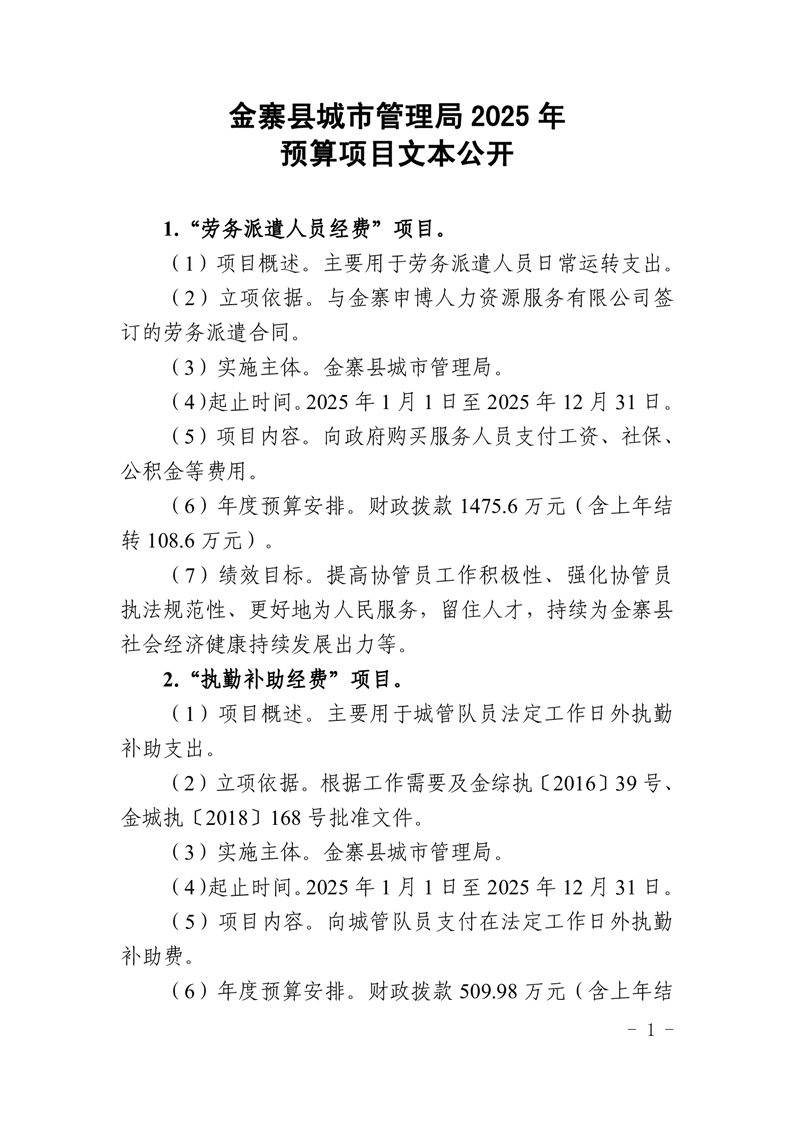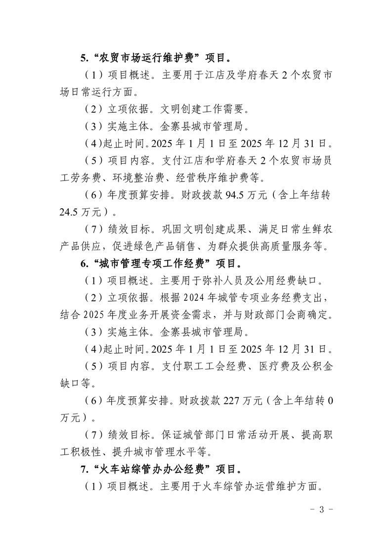 金寨縣城管局2025年預算項目文本公開