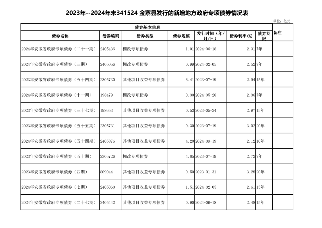 金寨縣2025年政府債券存續期公開