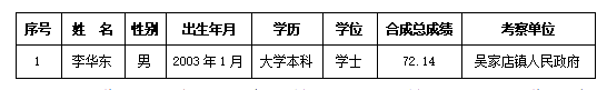2025年度金寨縣事業單位公開招聘工作,經報名、筆試、資格復審、面試、體檢、考察等程序,李華東同志入圍。根據《公告》規定,經研究,現對擬聘用人員予公示如下:
