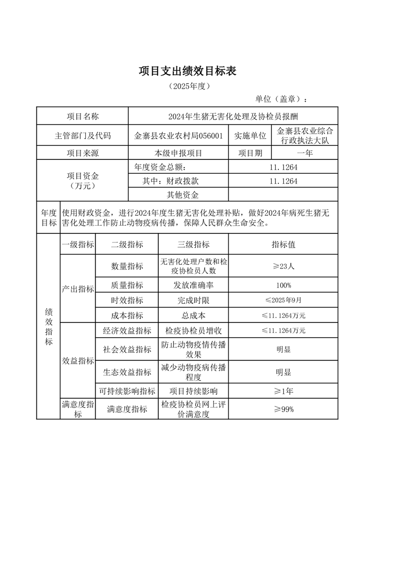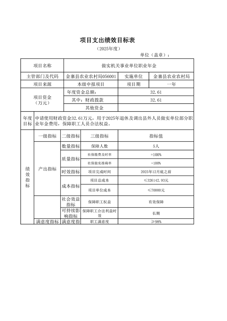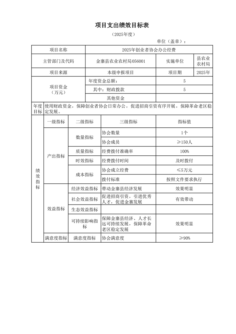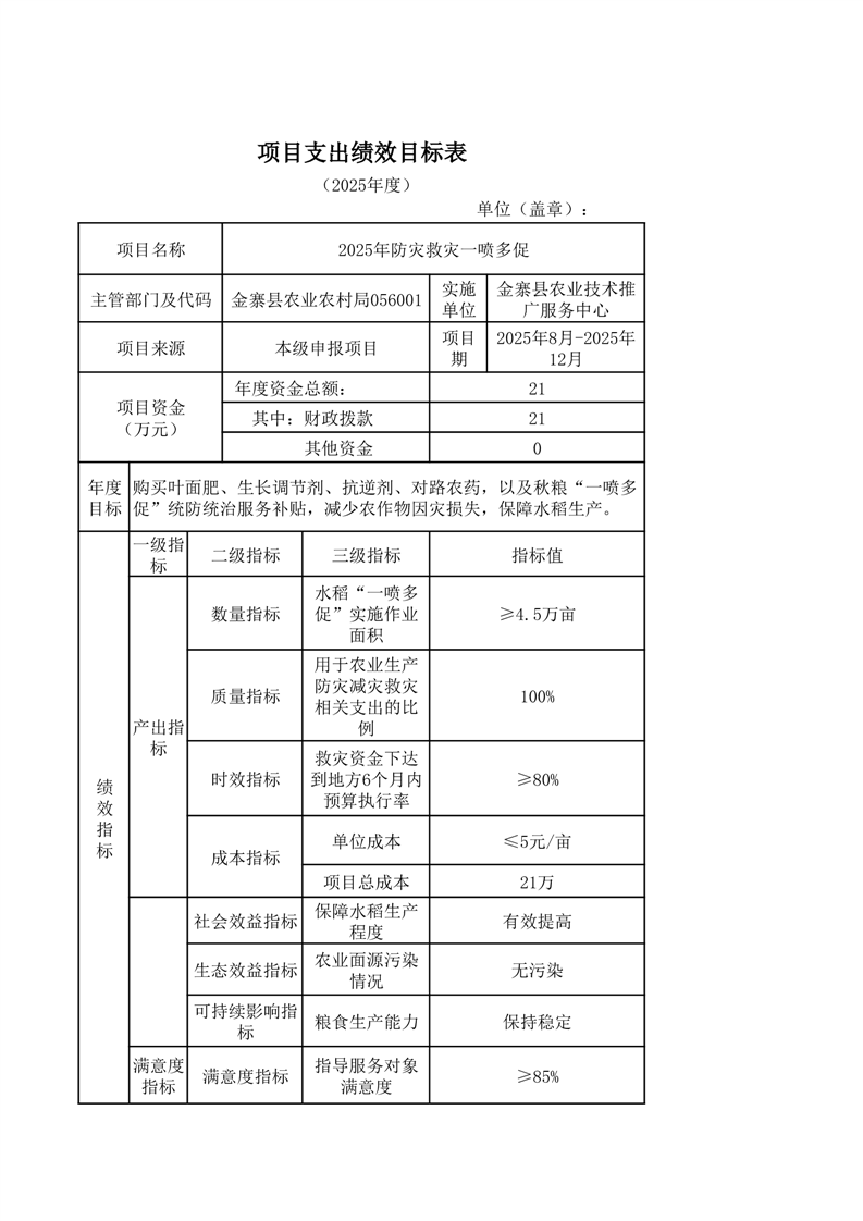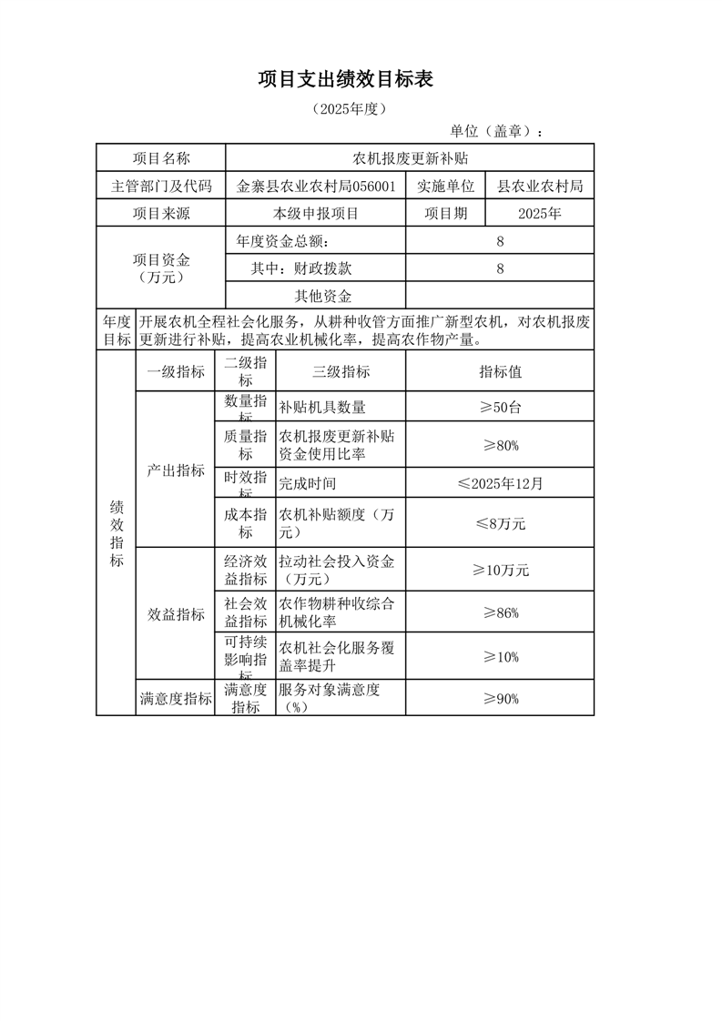 金寨縣農業農村局2025年第三季度追加項目績效目標表