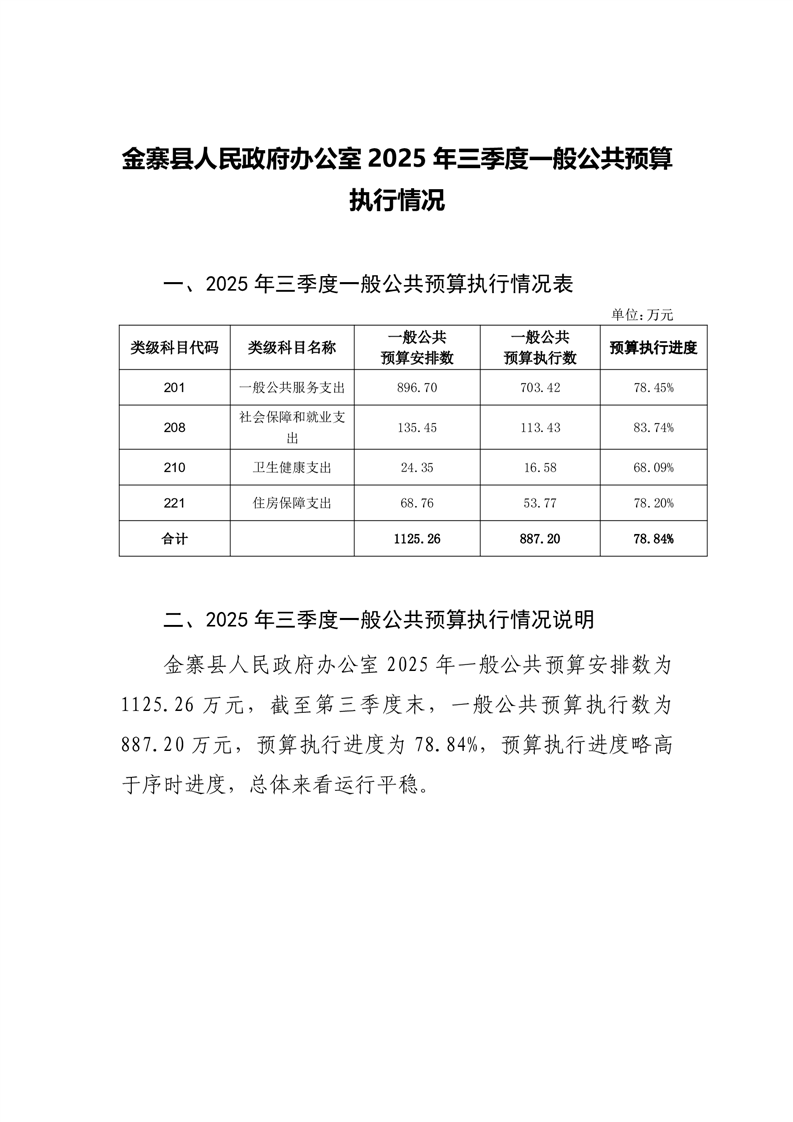 金寨縣人民政府辦公室2025年三季度一般公共預算執行情況
