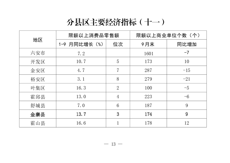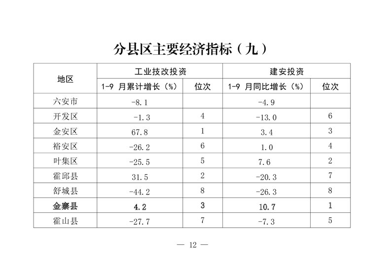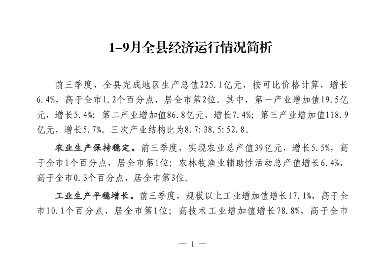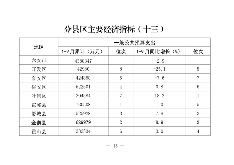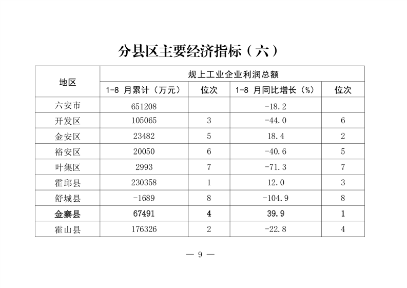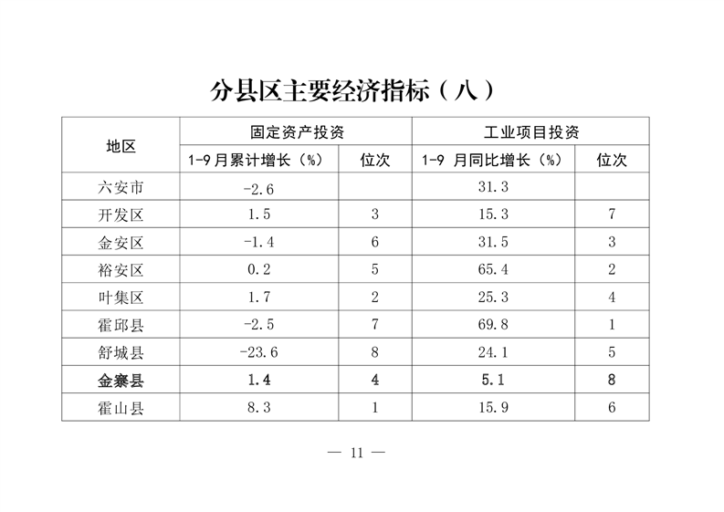 金寨縣2025年1-9月月度統(tǒng)計(jì)資料