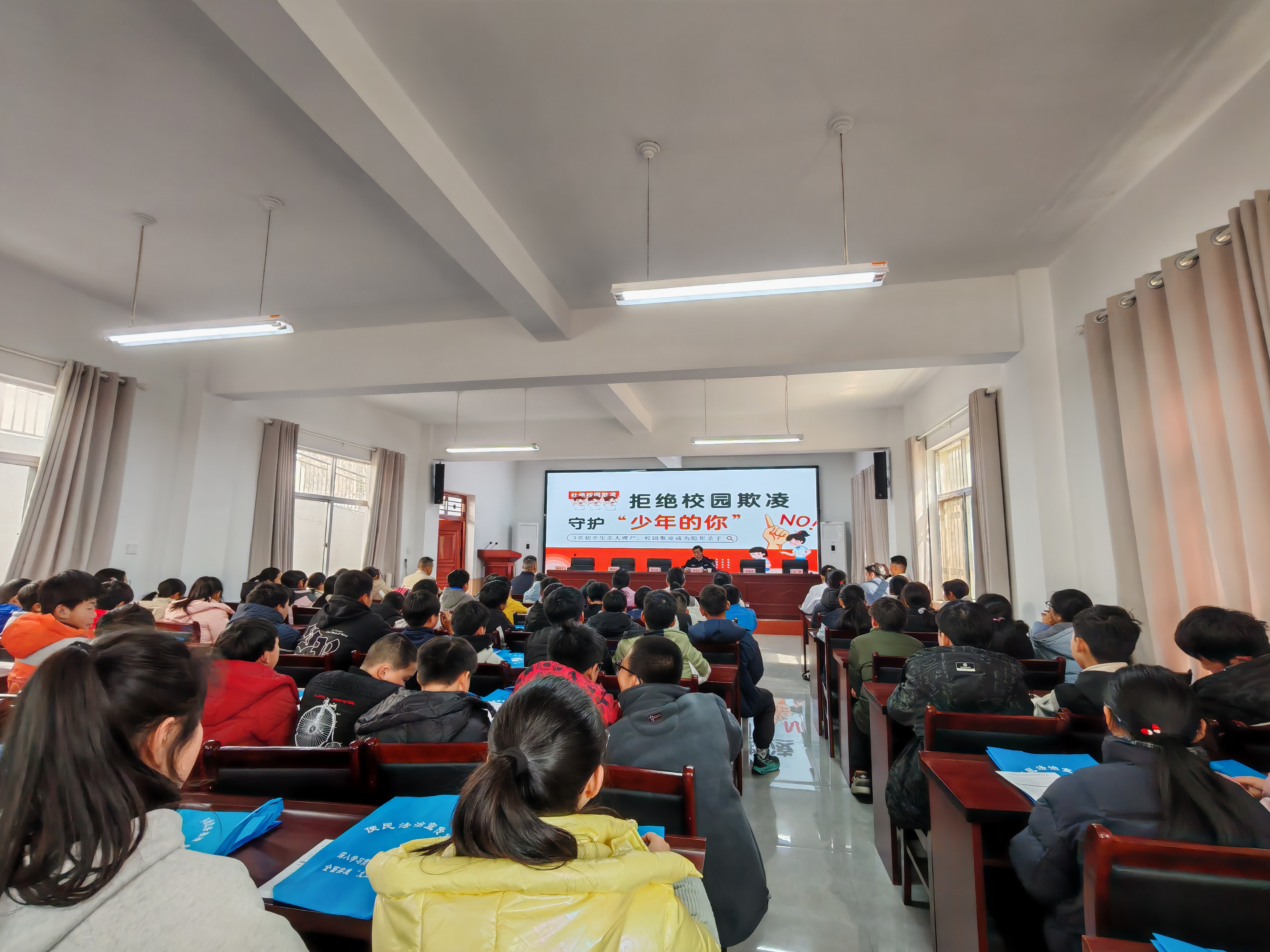 以案釋法,面對校園欺凌“零容忍”。活動中,金寨縣檢察院檢察干警圍繞近期社會廣泛關注的熱點校園事件,深入剖析校園欺凌的嚴重危害及法律后果。鄉司法所結合工作實踐,詳細解讀了《刑法修正案(十一)》關于未成年人犯罪的追訴標準及量刑規定,并重點闡釋了《未成年人保護法》中學校保護、司法保護的相關條款。同時,教育引導學生不做殘忍的施暴者,不做沉默的受害者,不做冷漠的旁觀者,學會用法律武器保護自己和他人的合法權益。