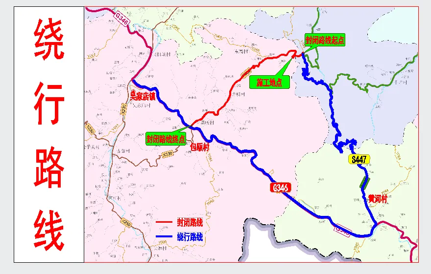 往返G346上安線(xiàn)至馬鬃嶺方向的車(chē)輛,可選擇從G346上安線(xiàn)(黃河段)至S447古天路路段繞行。