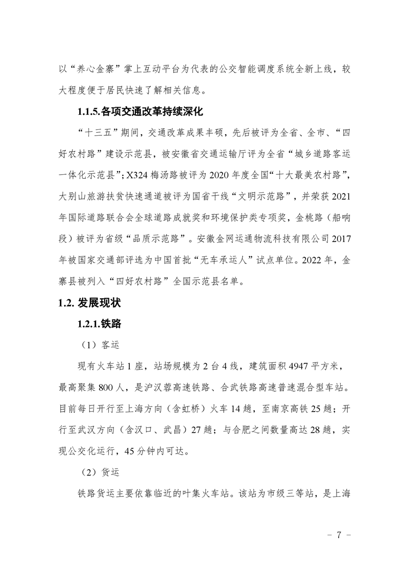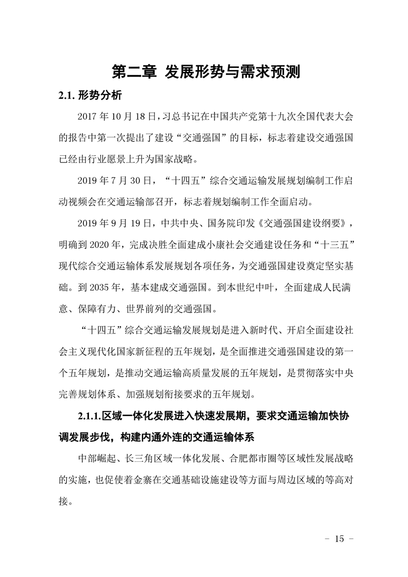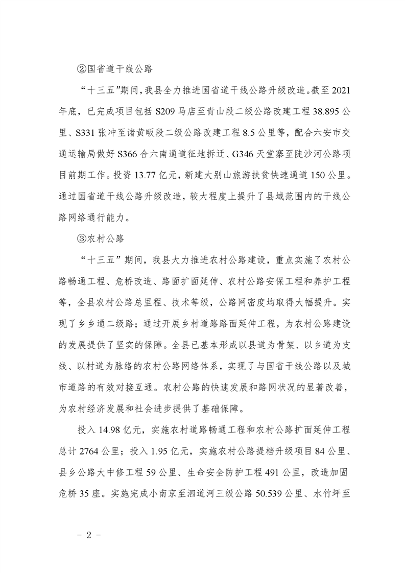 金寨縣關(guān)于“十四五”交通運輸發(fā)展規(guī)劃