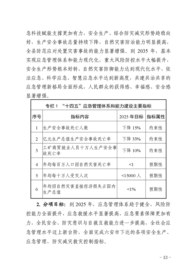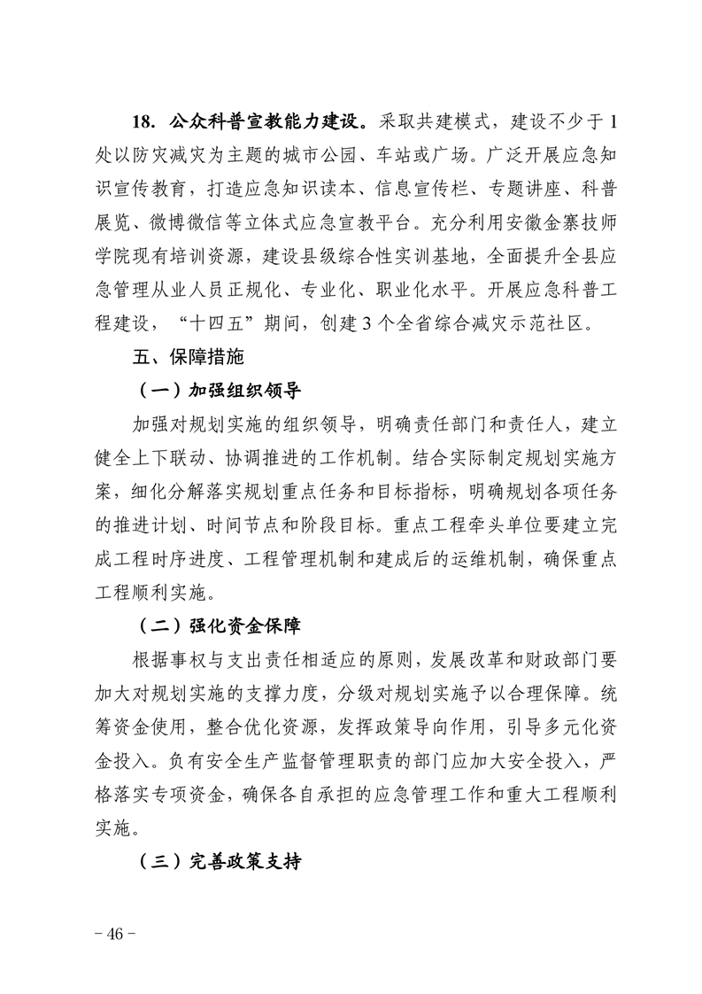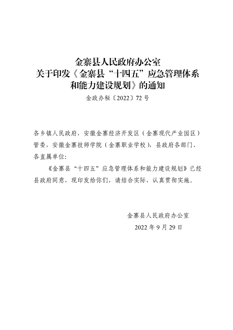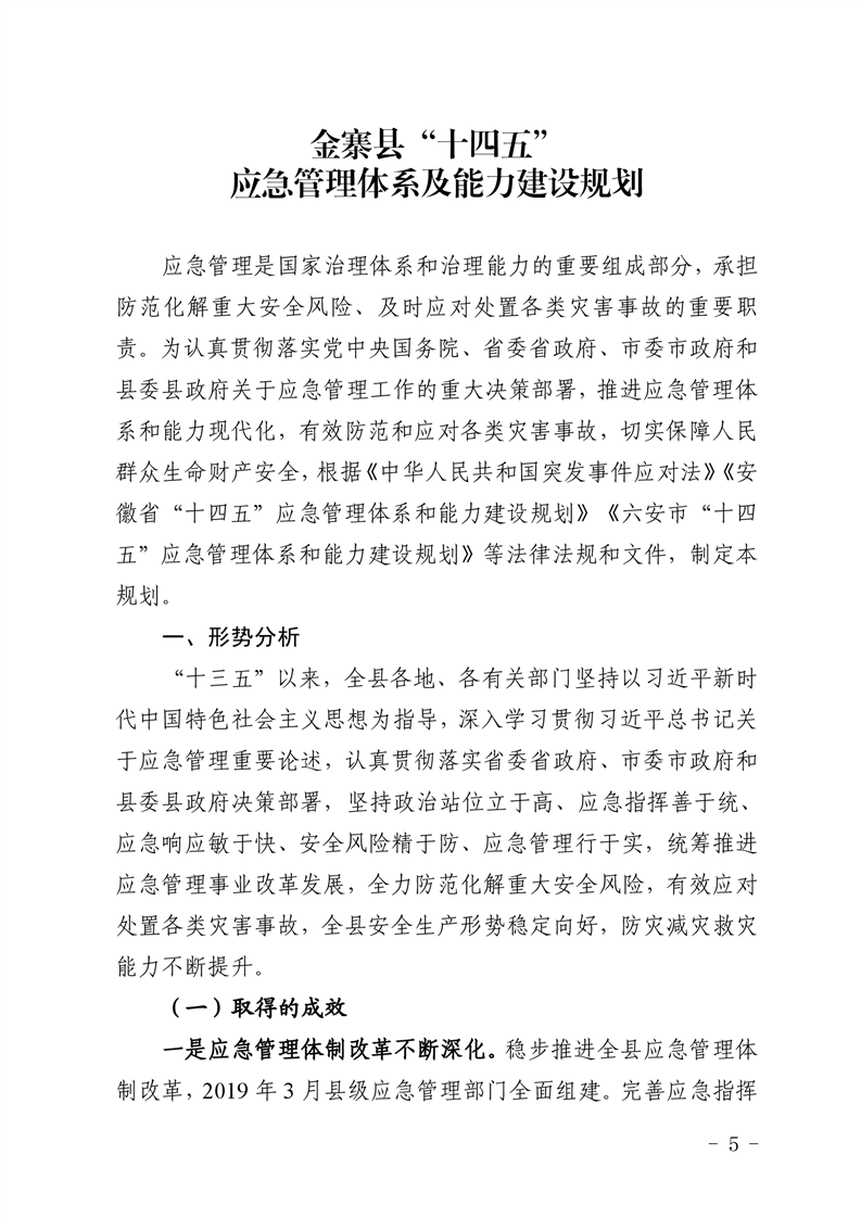 金寨縣人民政府辦公室關于印發《金寨縣“十四五”應急管理體系和能力建設規劃》的通知