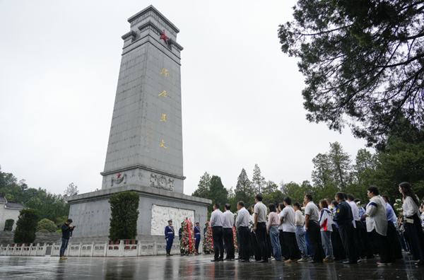 張澗說,金寨是中國(guó)革命的重要策源地,人民軍隊(duì)的重要發(fā)源地。從土地革命戰(zhàn)爭(zhēng)、抗日戰(zhàn)爭(zhēng)到解放戰(zhàn)爭(zhēng),十萬金寨兒女前赴后繼,血灑疆場(chǎng),用鮮血和生命鑄就了一寸山河一寸血,一抔熱土一抔魂的英雄史詩(shī)。最深的緬懷是傳承,最好的紀(jì)念是奮進(jìn)。我們要以革命先烈為榜樣,永葆對(duì)黨忠誠(chéng)信念堅(jiān)定的政治品格,貫徹落實(shí)習(xí)近平總書記考察金寨重要講話指示精神,鞏固拓展深入貫徹中央八項(xiàng)規(guī)定精神學(xué)習(xí)教育成果,以實(shí)際行動(dòng)堅(jiān)定擁護(hù)“兩個(gè)確立”,堅(jiān)決做到“兩個(gè)維護(hù)”。要以革命先烈為榜樣,站穩(wěn)人民至上,心系群眾的根本立場(chǎng),在高質(zhì)量發(fā)展中促進(jìn)共同富裕,不斷增強(qiáng)老區(qū)人民的獲得感、幸福感。要以革命先烈為榜樣,砥礪敢于斗爭(zhēng),勇于勝利的奮斗精神,埋頭苦干,狠抓落實(shí),為“十四五”圓滿收官、“十五五”良好開局打下堅(jiān)實(shí)基礎(chǔ)。