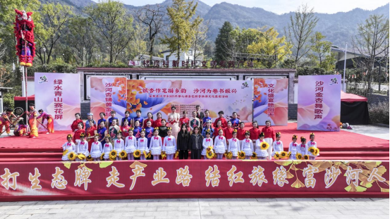 開幕式在沙河鄉樓房村新時代文明實踐廣場正式啟幕。一曲《美麗沙河》隨著旗袍佳人的優雅步履,緩緩鋪開沙河的靈動畫卷;舞獅表演《獅舞吉祥杏報如意》騰空跳躍,以傳統技藝點燃全場激情;孩子們帶來少兒舞蹈《顆顆銀杏放光彩》,純真的笑臉與活力的舞步,如同沙河未來的希望,熠熠生輝;深情激昂的紅歌聯唱,喚醒了大別山深處的紅色記憶;笛子獨奏 《揚鞭催馬運糧忙》以歡快的旋律,奏響鄉村振興的豐收樂章;而壓軸的全場大合唱《我和我的祖國》,更是將開幕式的氣氛推至頂峰,歌聲嘹亮、情懷激蕩。