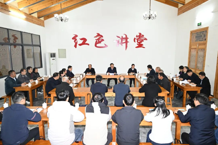11月10日晚,省委書記梁言順在金寨縣大灣村紅色講堂與縣鄉村黨員干部和村民代表座談交流,宣講黨的二十屆四中全會精神。