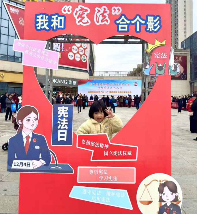 活動現場,各單位的宣傳展臺依次排開,形成熱鬧的“法治市集”,工作人員結合群眾關心的熱點,圍繞憲法核心要義、民法典民生條款以及反詐防騙、勞動維權、退役軍人保障等領域法律知識,摒棄晦澀的法律術語,用金寨本地方言和真實案例拆解法律要點,為群眾提供“面對面”“心貼心”的法治服務。現場設置的“我和憲法合個影”互動打卡點成為“流量擔當”,印有憲法標語的打卡背景板前,不少市民帶著孩子拍照打卡,同時將照片分享到朋友圈,帶動身邊人一起學習憲法知識,形成線上線下聯動的傳播效應。
